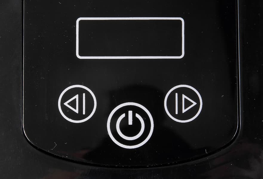Сверху у моторного блока находится панель управления, состоящая из трех сенсорных кнопок и небольшого цифрового дисплея.