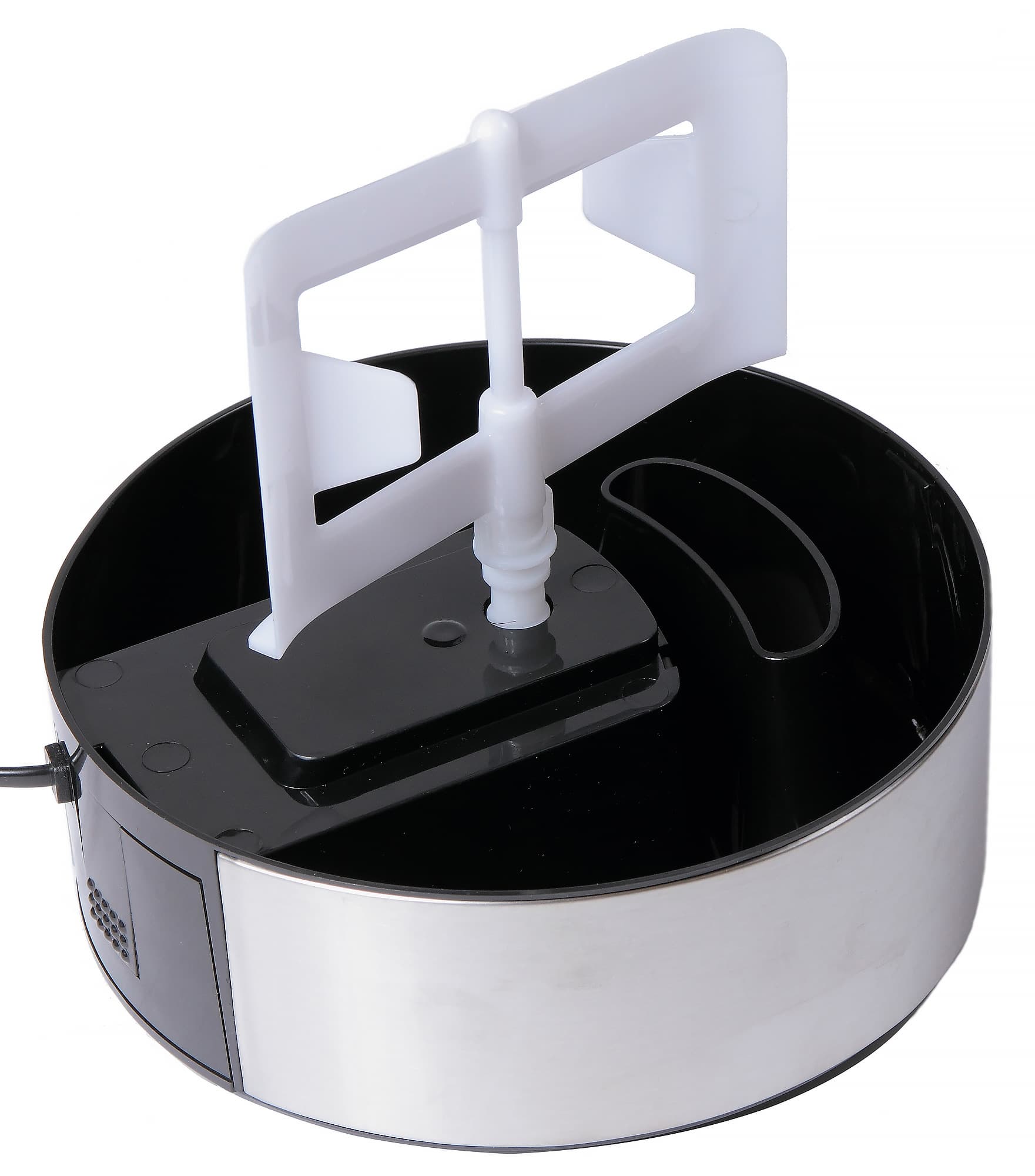 Особый интерес представляет пластиковый моторный блок. Он у нашей модели съемный и фиксируется на крышке с помощью кнопки-защелки. Благодаря такому решению крышку будет гораздо проще отмыть: ее можно поместить под струю проточной воды, что, очевидно, было бы невозможно в случае несъемного мотора.