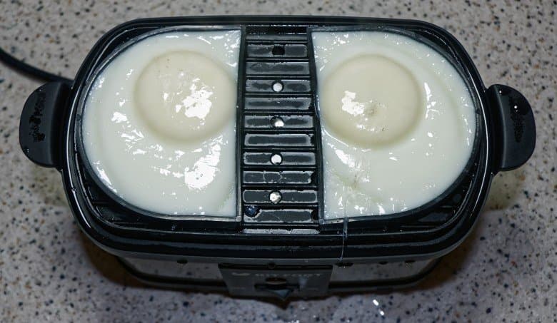 Поддоны могут быть использованы для приготовления яичницы на пару́. Чтобы не переполнить поддоны, рекомендуется использовать яйца не крупнее 1-й категории. Наш опыт общения с поддонами оказался не слишком впечатляющим: разбивать яйца в них нужно очень аккуратно, а даже небольшая капля белка, попавшая в чашу с водой, приведет к тому, что в процессе приготовления под крышкой прибора образуется характерная белковая пена, которую придется впоследствии отмывать от крышки и стимера.