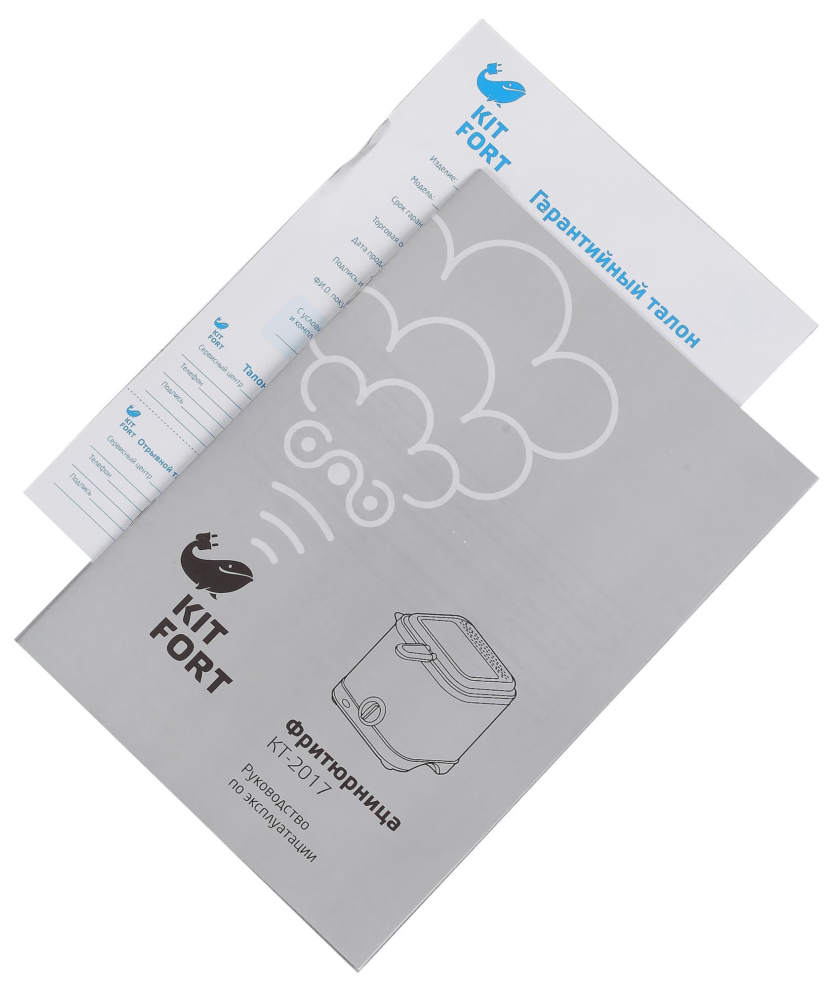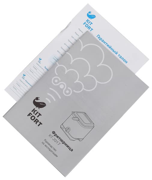 Традиционно для Китфорта инструкция написана простым понятным языком, изложение информации последовательное и логичное. Помимо общих сведений, описания конструкции, правил эксплуатации, ухода и хранения, в руководстве содержатся сведения и советы по приготовлению пищи во фритюре. Советов много, изучение их, по меньшей мере, полезно, по большей — любопытно. Пользователь узнает правила выбора масла для жарки во фритюре, особенности жарки замороженных продуктов и полуфабрикатов, периодичность замены масла и рекомендации по его фильтрации и хранению.