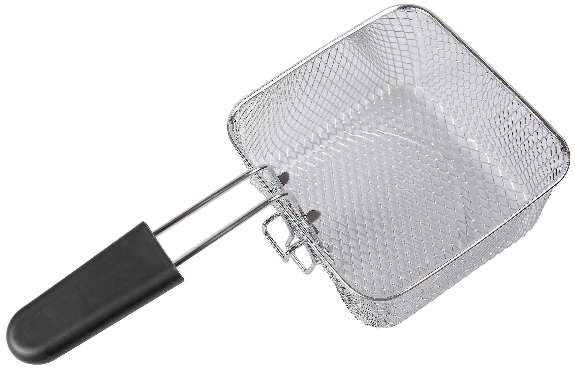 Решетчатая корзина изготовлена из нержавеющей стали. Корзина размещается в масляной ванне, оставляя достаточно места по сторонам для равномерной прожарки продуктов. Съемная ручка легко и надежно крепится на корзине. С внешней стороны под рукояткой закреплен крюк, позволяющий установить корзину на корпусе для слива остатков масла с поджаренных продуктов.