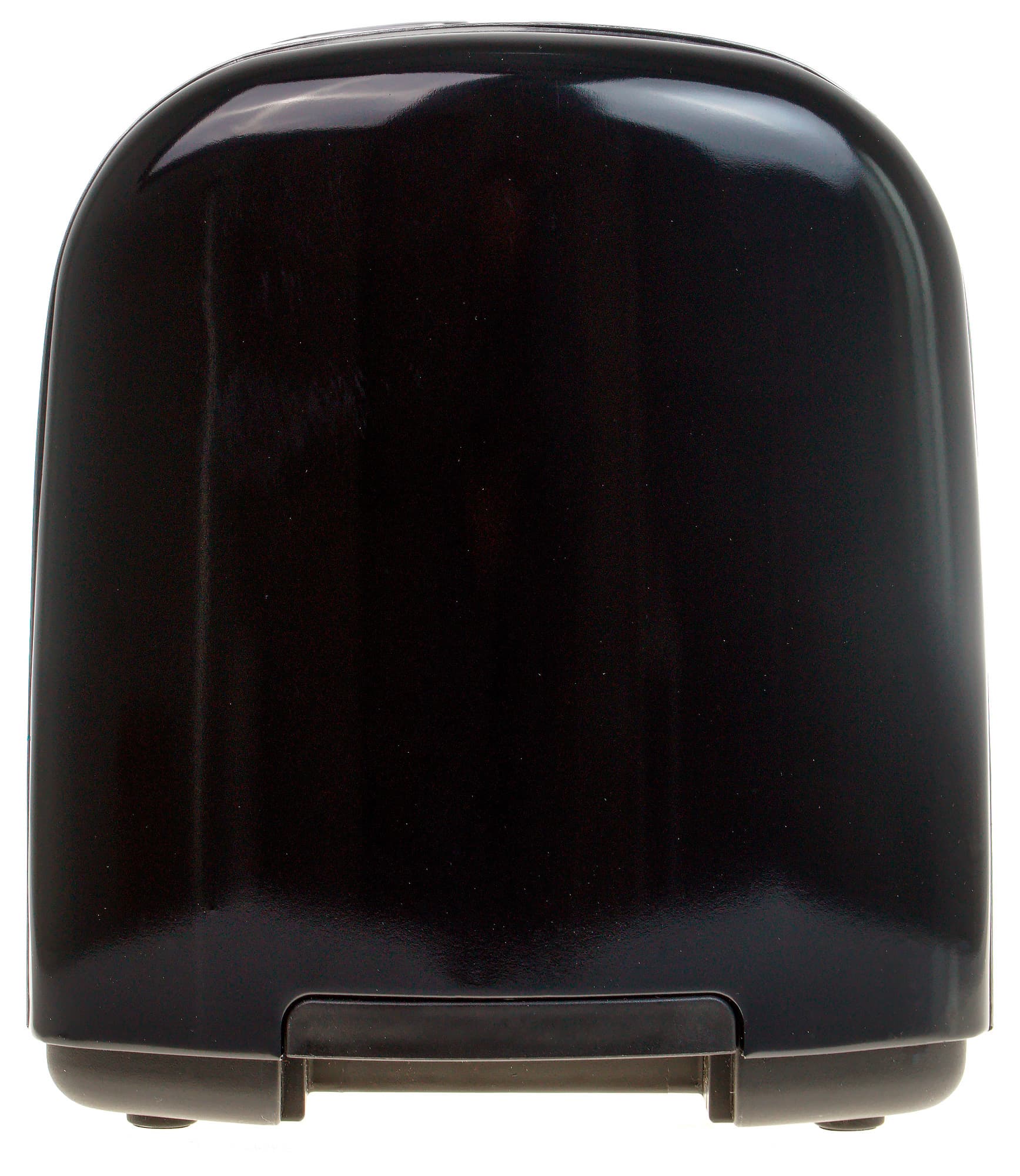 Торцевые стенки тостера покрыты черным матовым пластиком. Одна из них глухая, только внизу небольшой язычок из такого же пластика: за него можно вытащить поддон, подцепив язычок снизу и потянув на себя. Ничего приподнимать или отжимать не нужно, только преодолеть небольшое сопротивление.