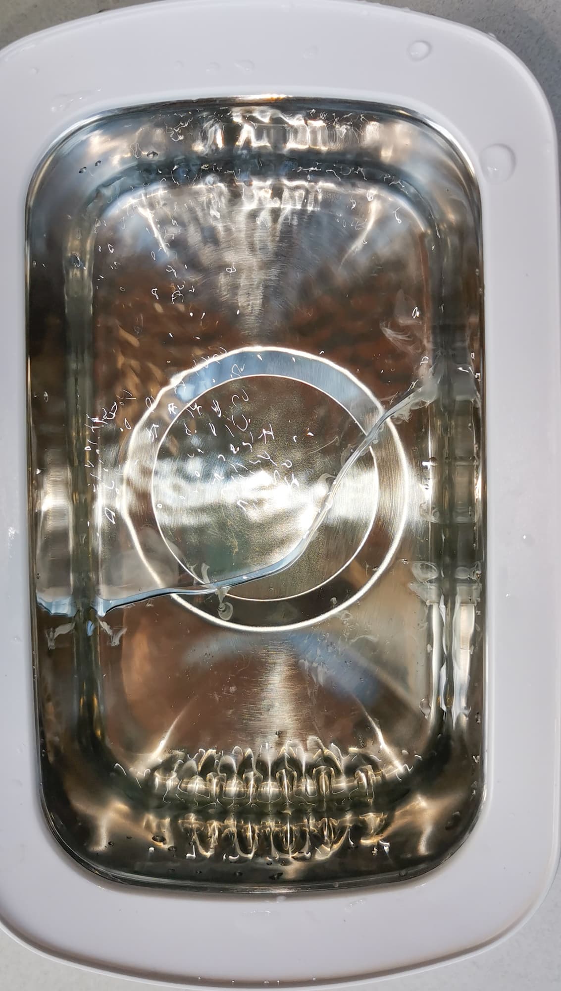 Вода стала заметно грязнее, на дне появились небольшие островки мутного осадка, значит какую-то грязь прибор смог снять с изделий. Достали предметы.
