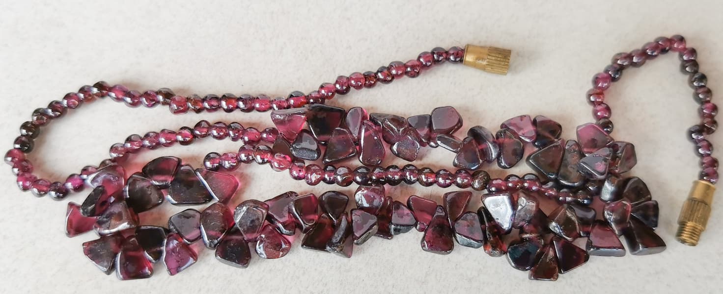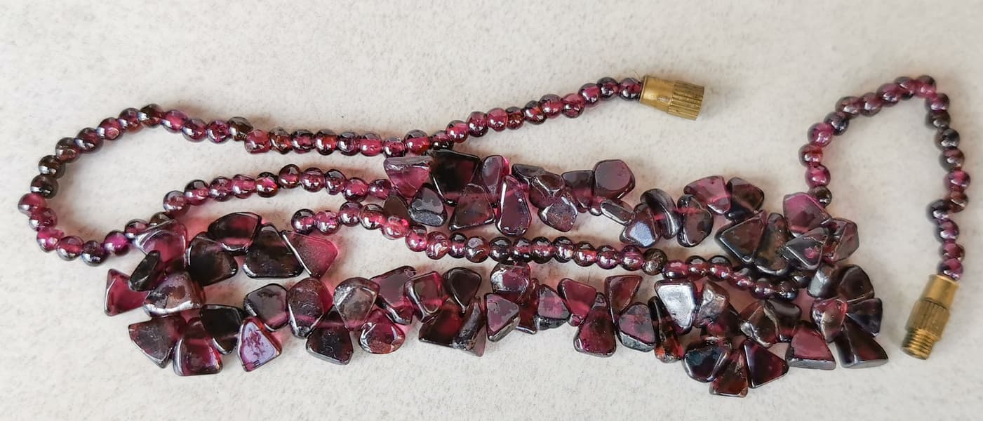 Долго лежавшее колье из шлифованных гранатов мы обработали в мойке на длинном цикле.