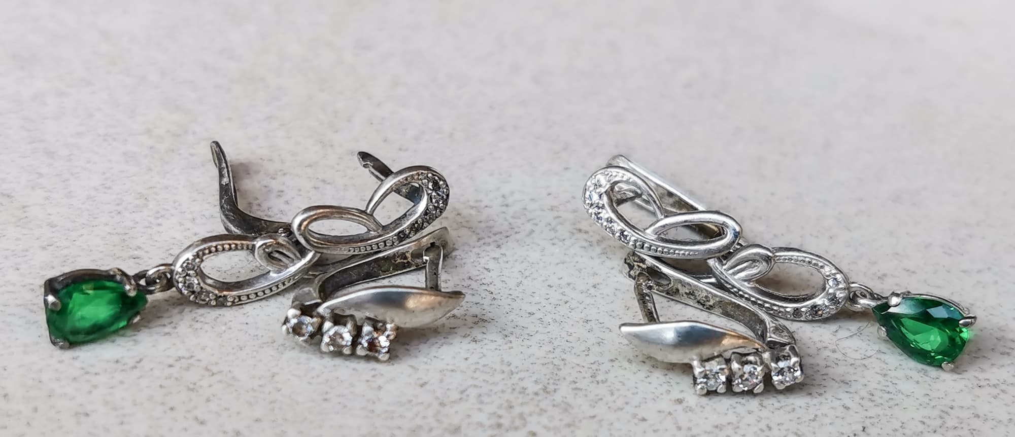 Но на части украшений исчезла полировка и они стали равномерно белые. Налет с камней сошел и спереди и сзади в труднодоступных местах, так что к качеству очистки камней никаких претензий нет.