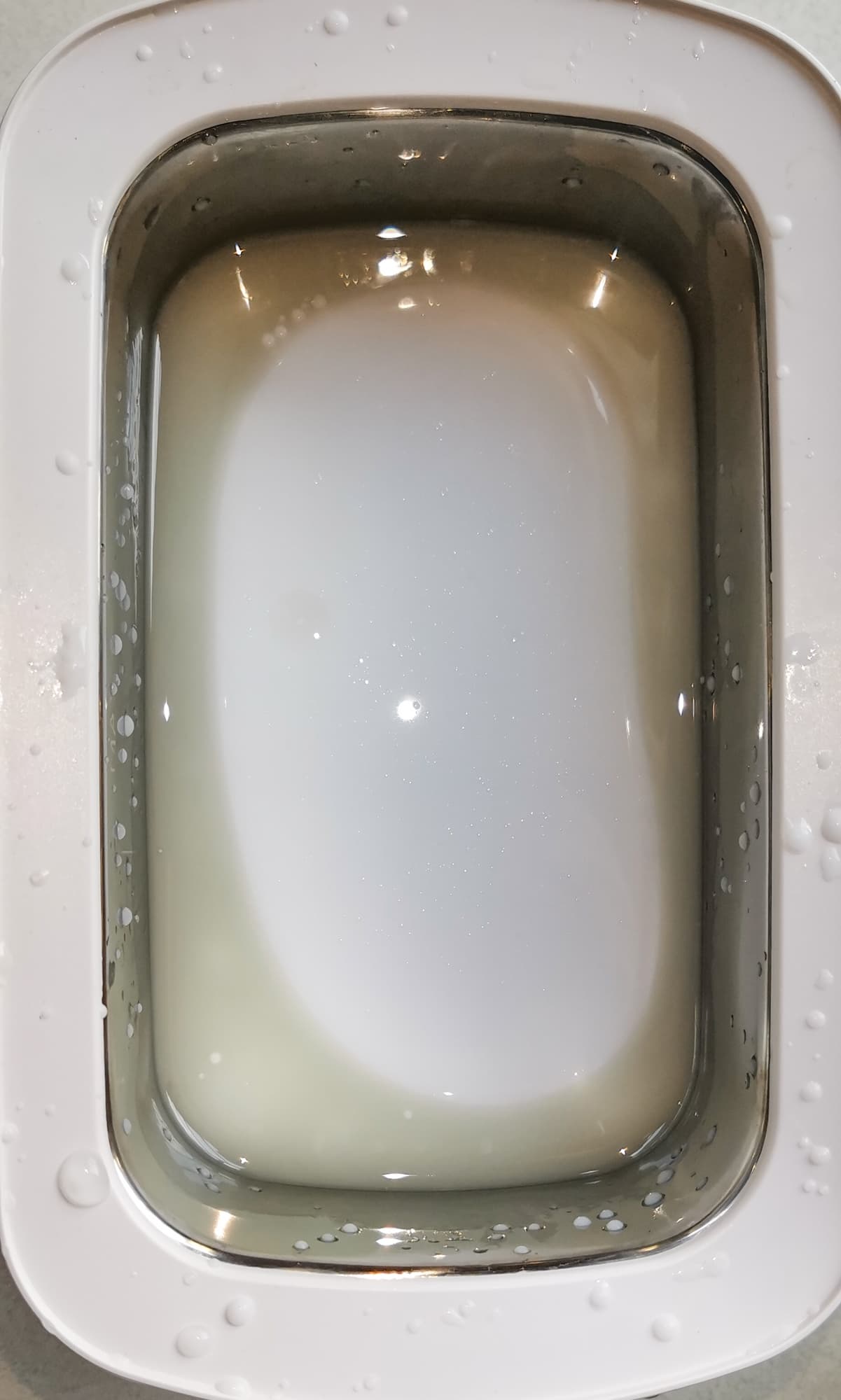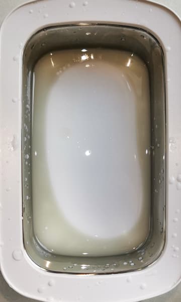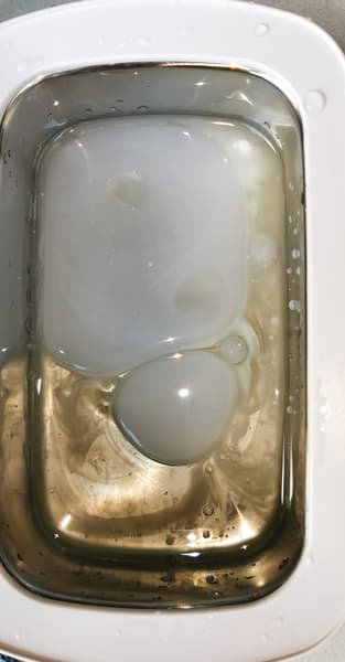 После 2 циклов чистки по 8 минут на дне были явно заметны скопления грязи.