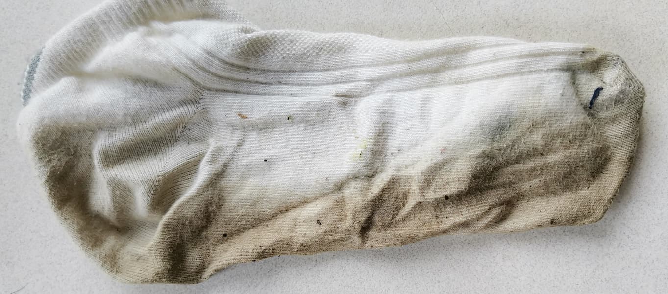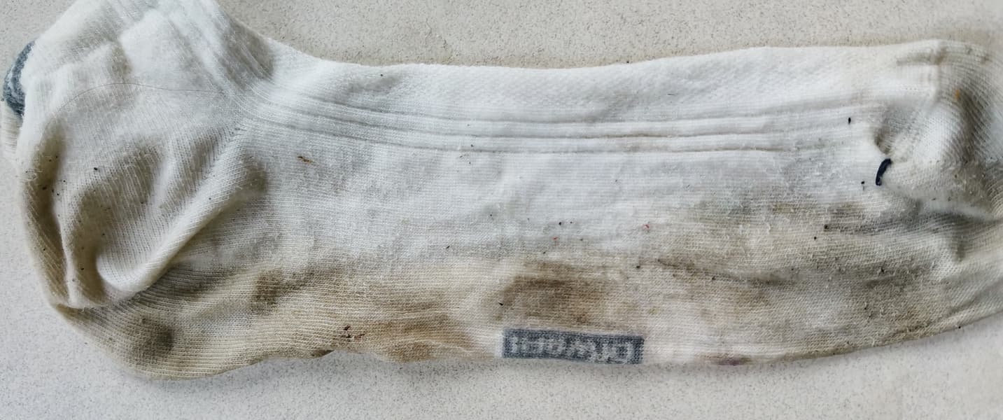 Мы слышали, что в подобных мойках хорошо отстирываются сильные загрязнения. Мы нашли очень грязный белый носок и решили экспериментировать на нем.