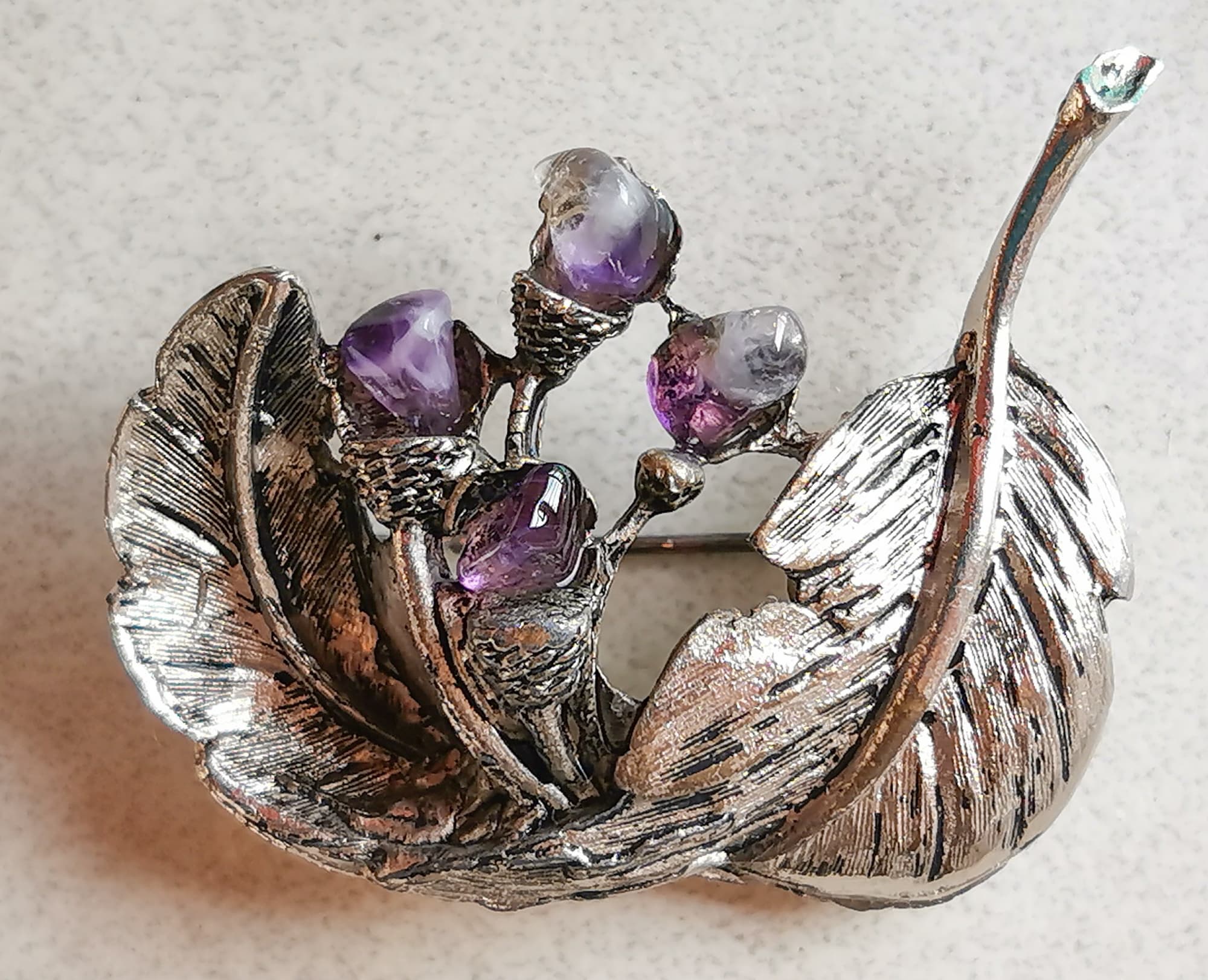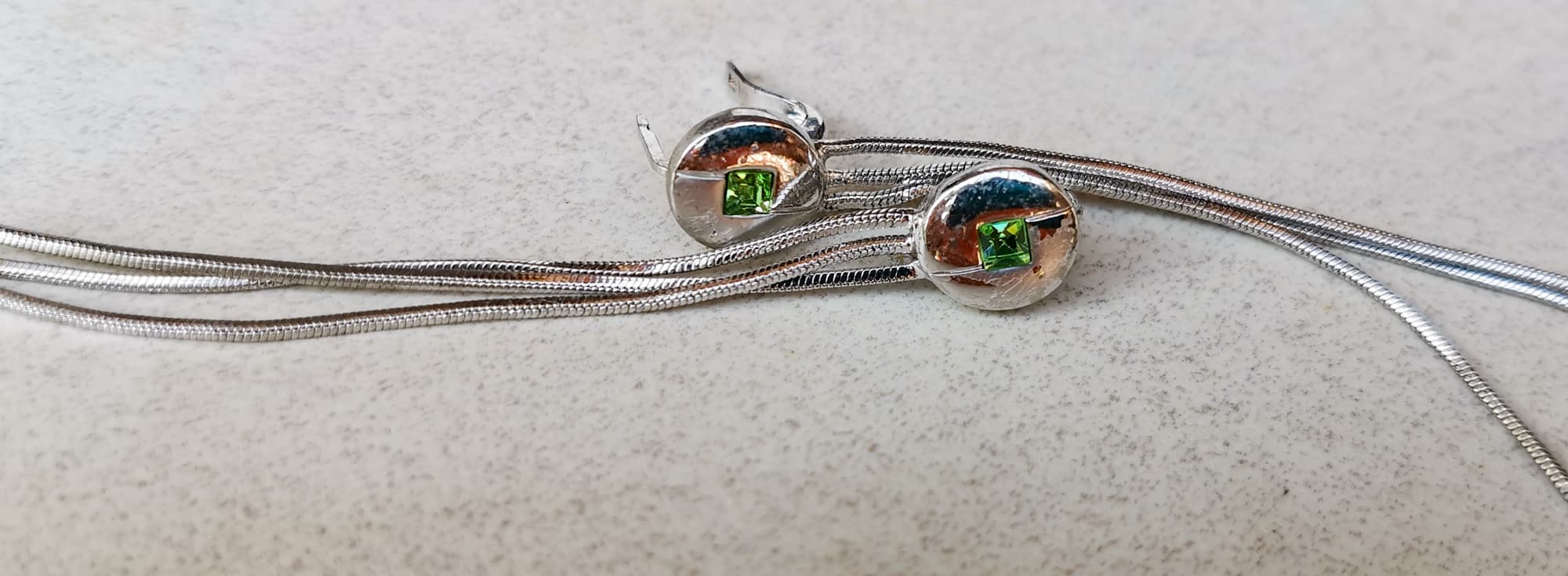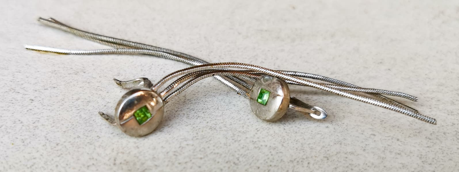 Мы нашли старую медную хромированную брошь и серьги с небольшими вставками.