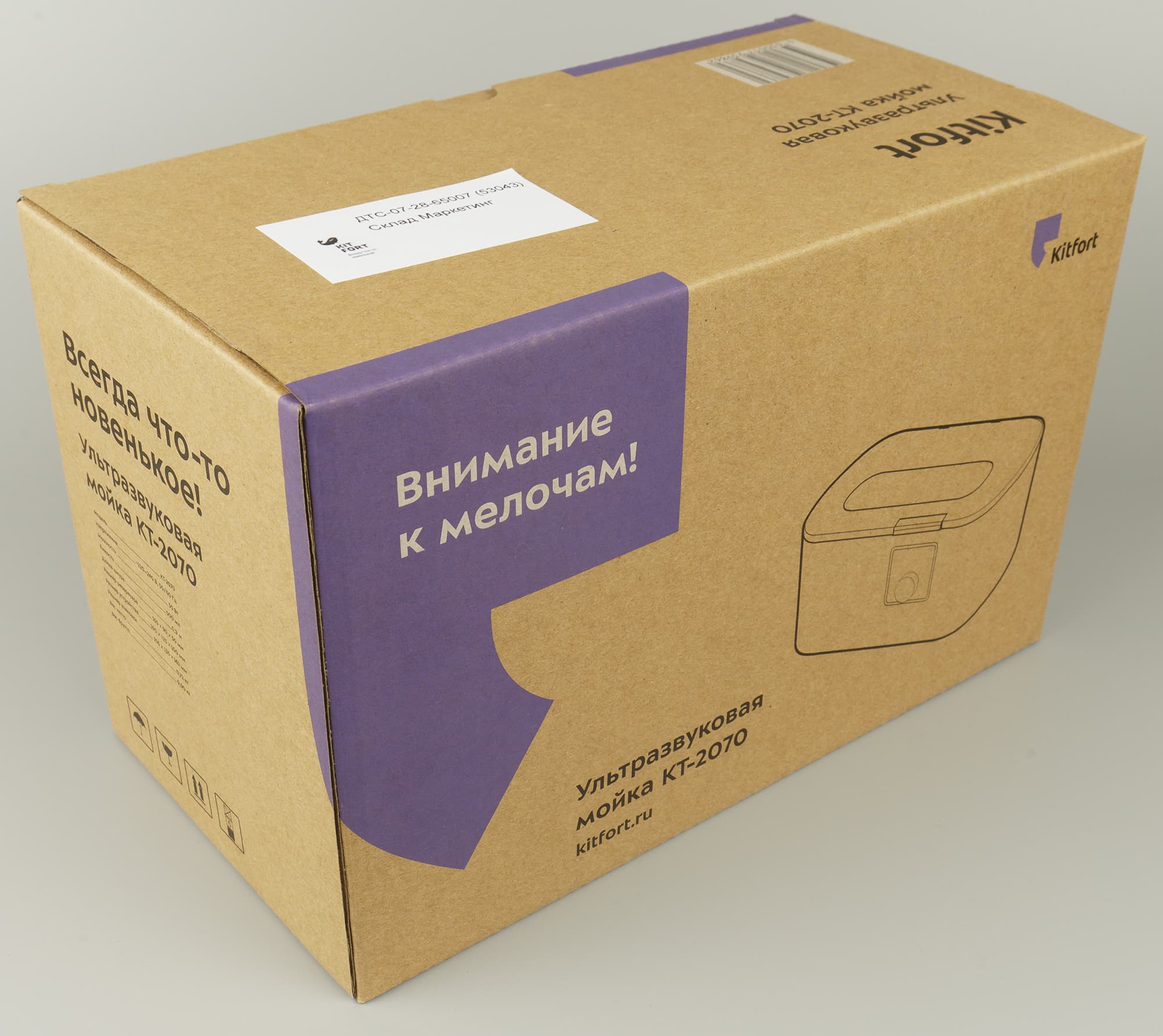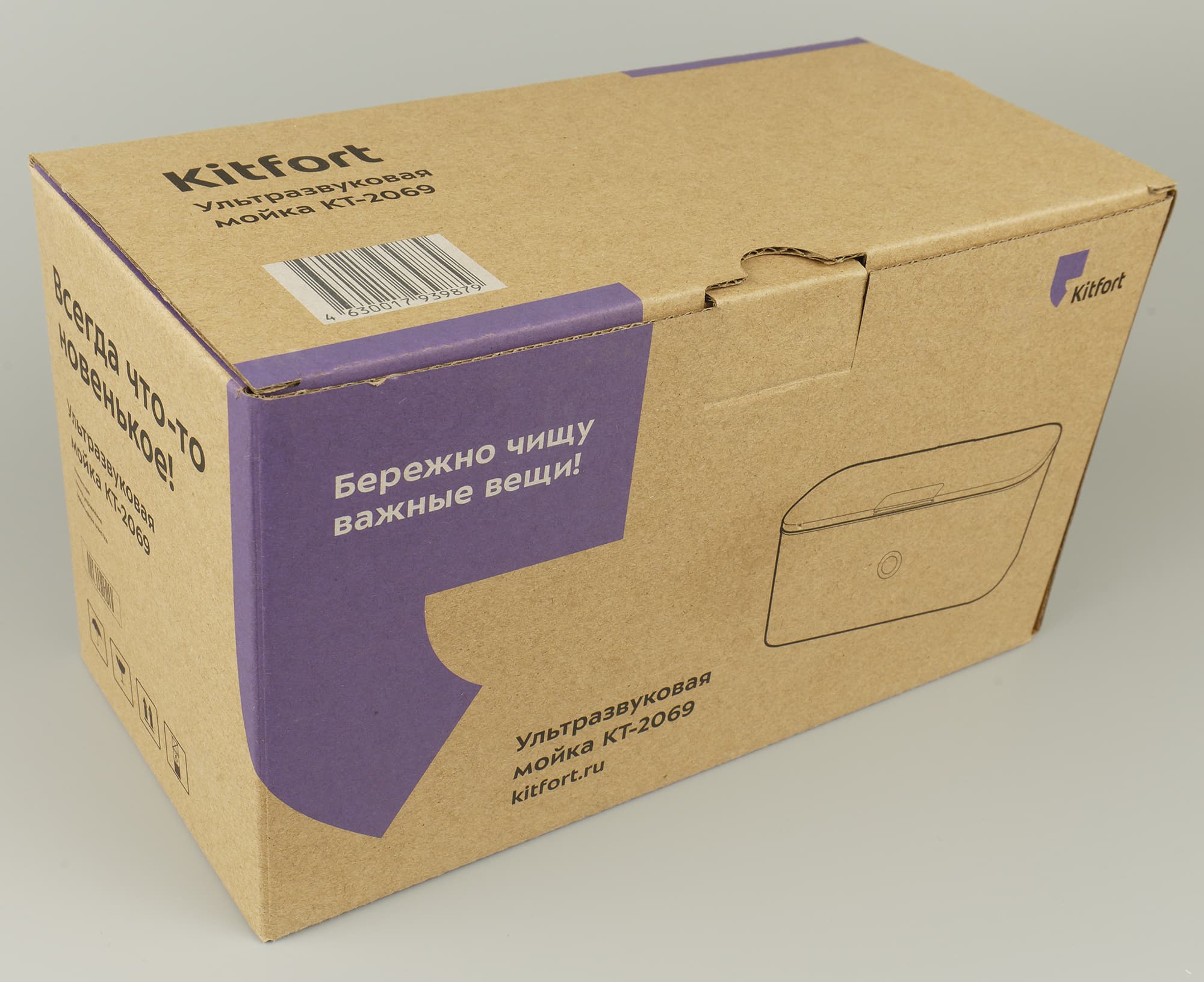Мойки КТ-2069 и КТ-2070 приехали в небольших картонных коробках, оформленных в классическом стиле производителя. Фиолетовый и черный цвет на эко-картоне, схематичный рисунок прибора, техническая информация и рекламный слоган. Ничего лишнего.