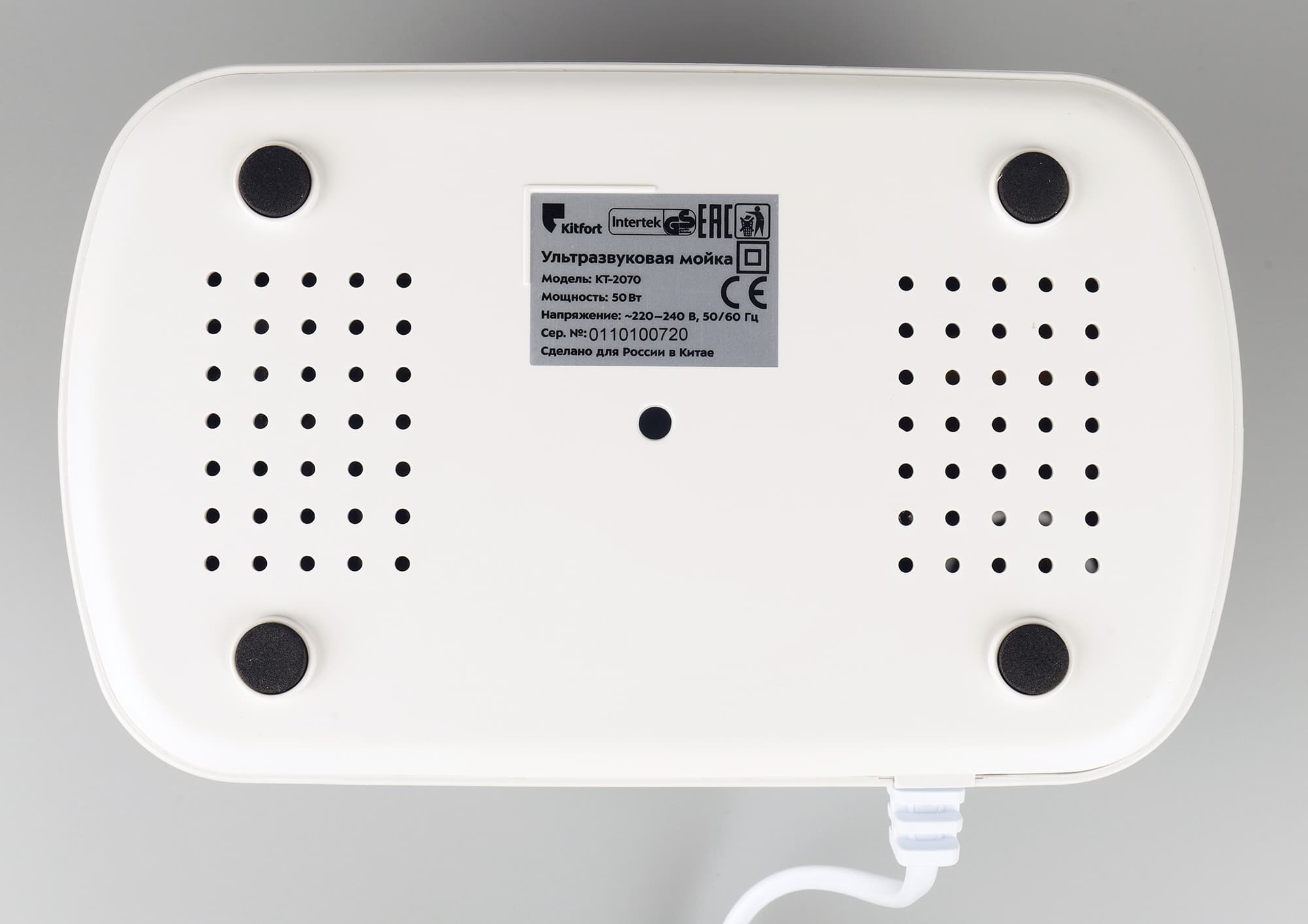 Снизу прибора находятся вентиляционные отверстия и наклейка с серийным номером и технической информацией.
