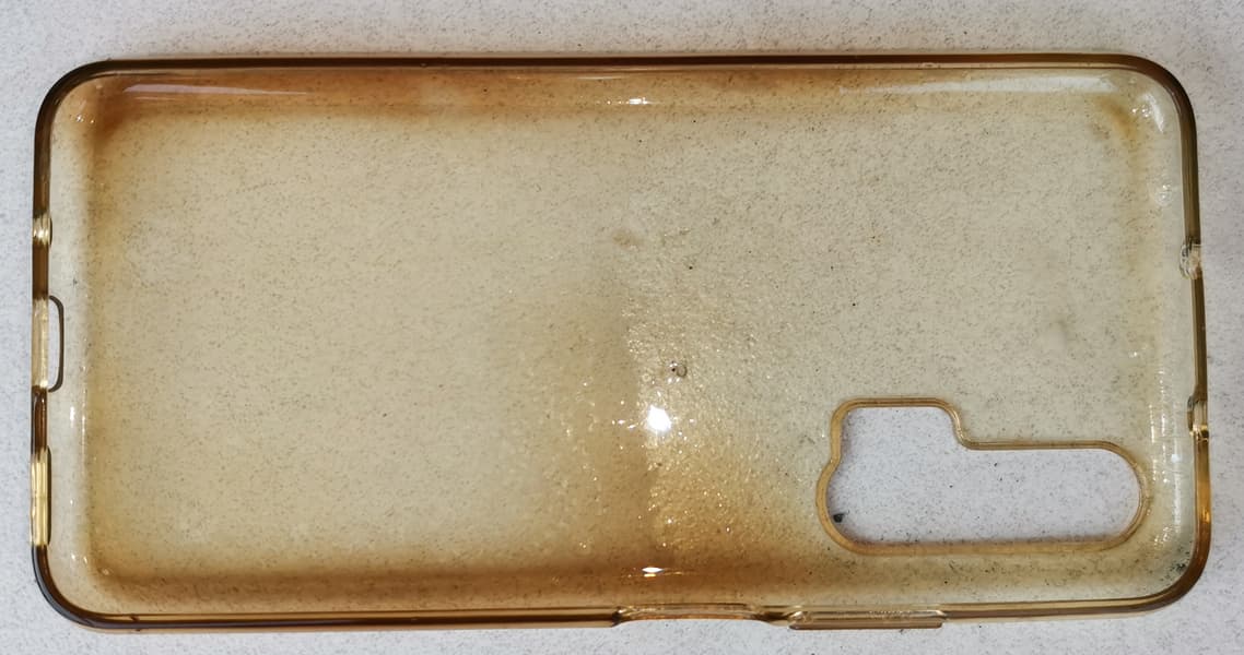 Для следующего теста мы взяли старый чехол от телефона и решили его отчистить с помощью воды, мыла и КТ-2070.
