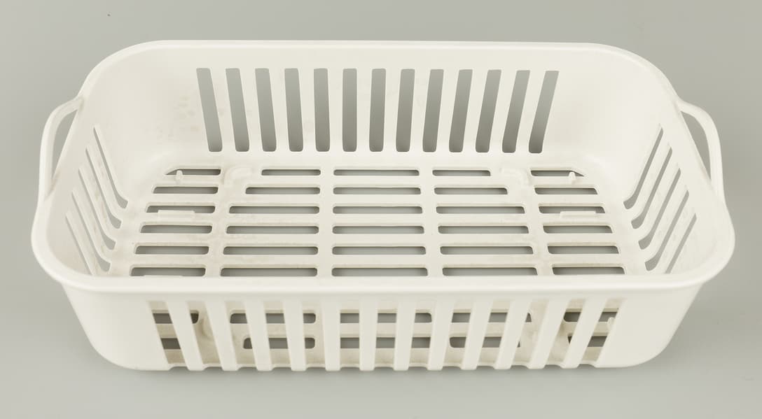 В нержавеющую ванночку для удобства использования вставляется пластиковая корзинка с небольшими ручками.