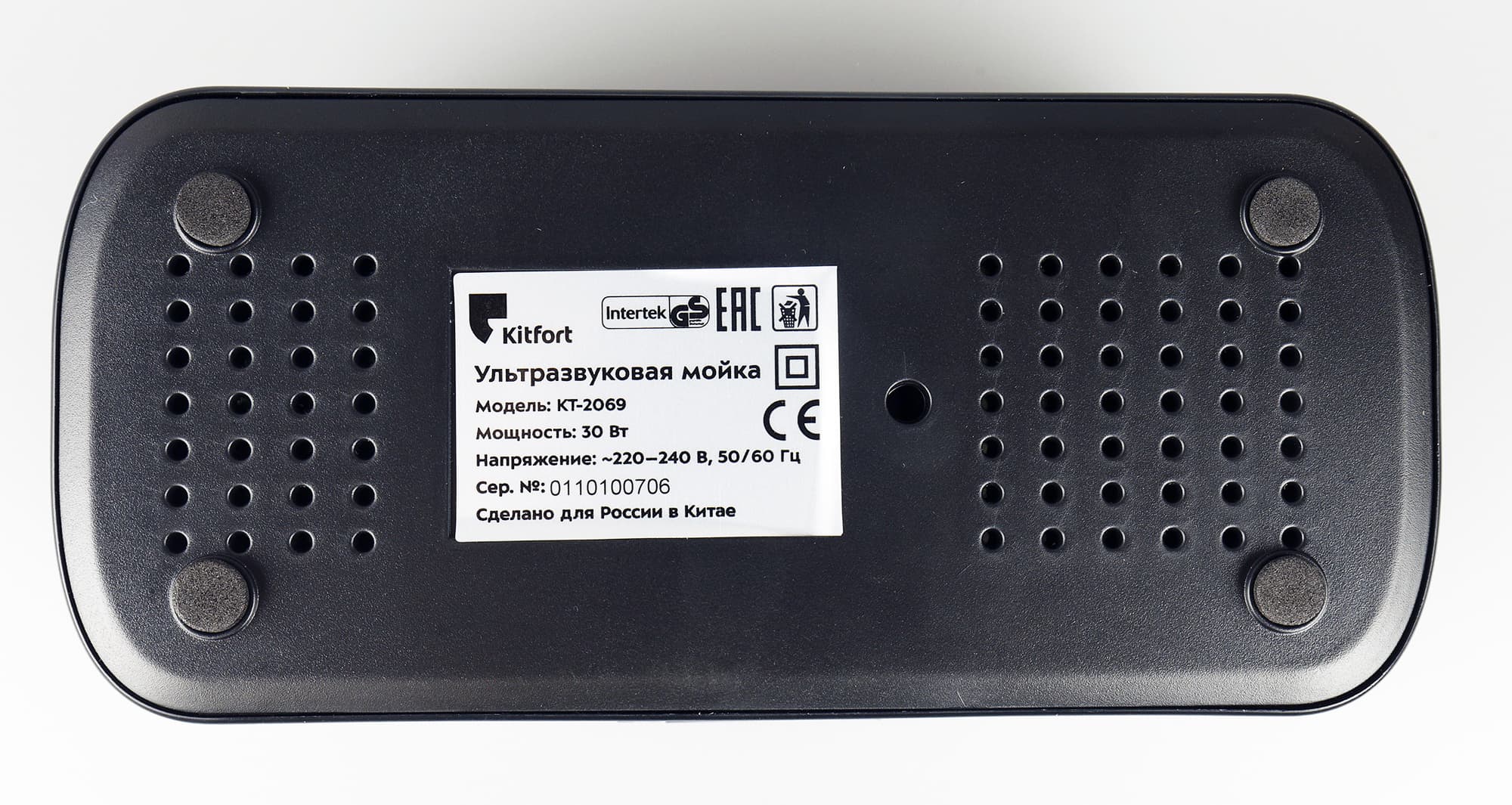На нижней части располагаются вентиляционные отверстия и наклейка с серийным номером. Прибор установлен на небольшие прорезиненные ножки.