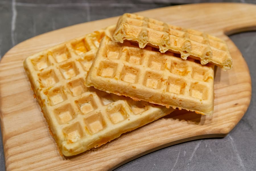 Вафли получились пышными, тесто полностью пропеклось. Этого количества ингредиентов хватило на 4 вафли.