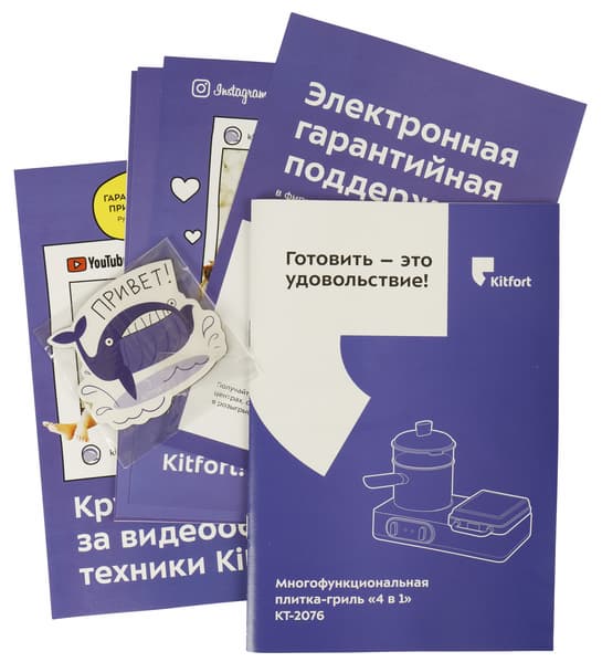 Kitfort КТ-2076 комплектуется 3 парами панелей: для бутербродов, для вафель и для гриля.