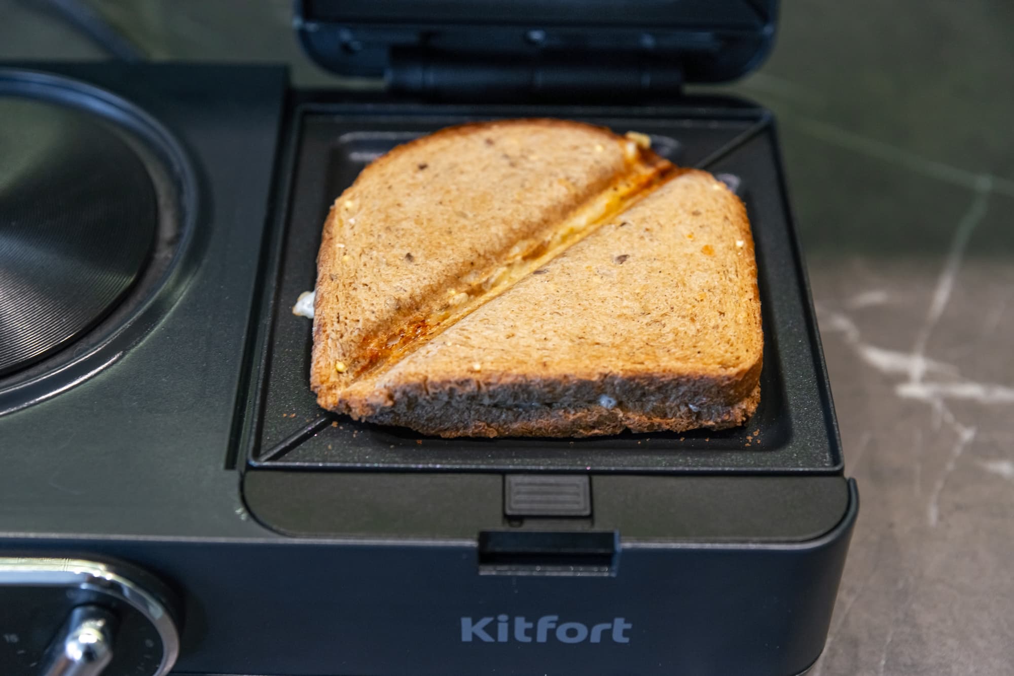 Съемные панели для гриля удобны, с их помощью у нас получились отличные вафли, горячие бутерброды и небольшая порционная яичница.