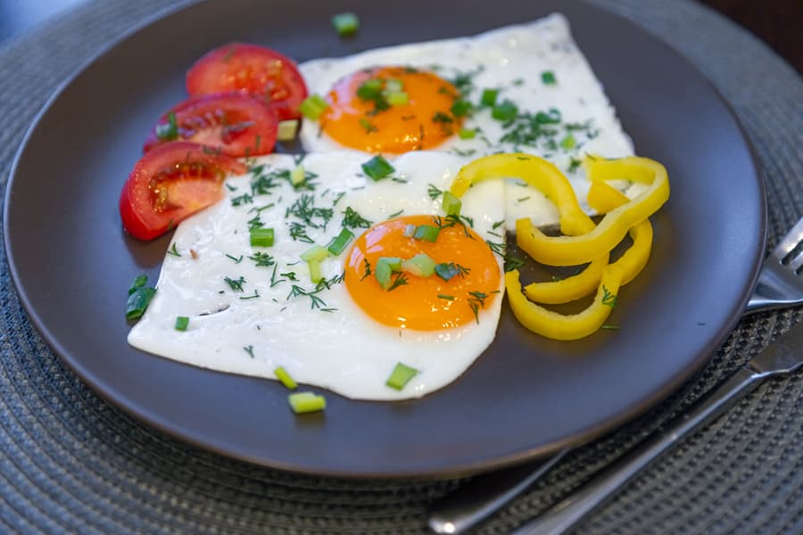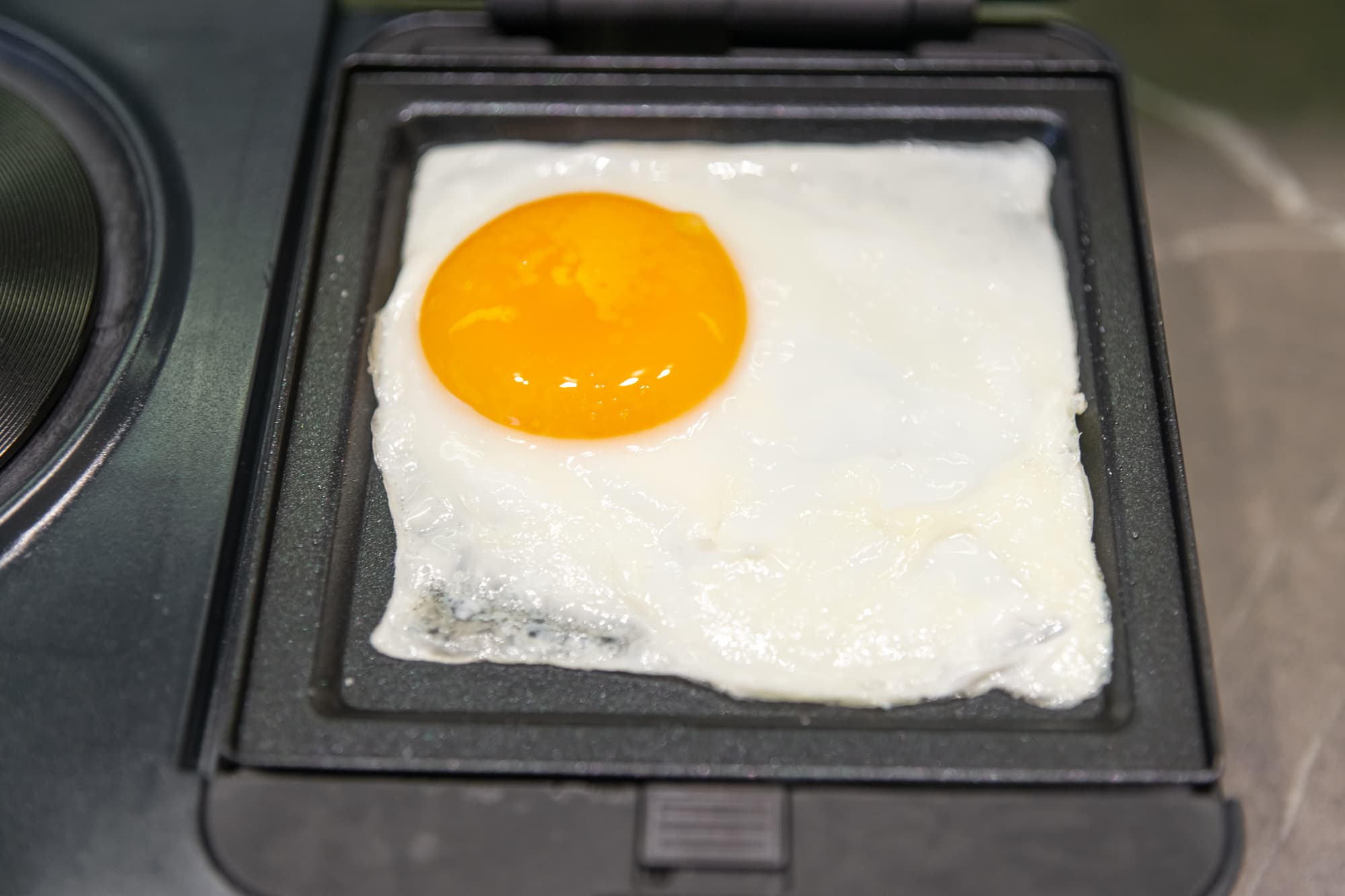 На панель налили немного масла и разбили яйцо. Крышку закрывать не стали. До полной готовности одной яичницы уходит 5 минут.