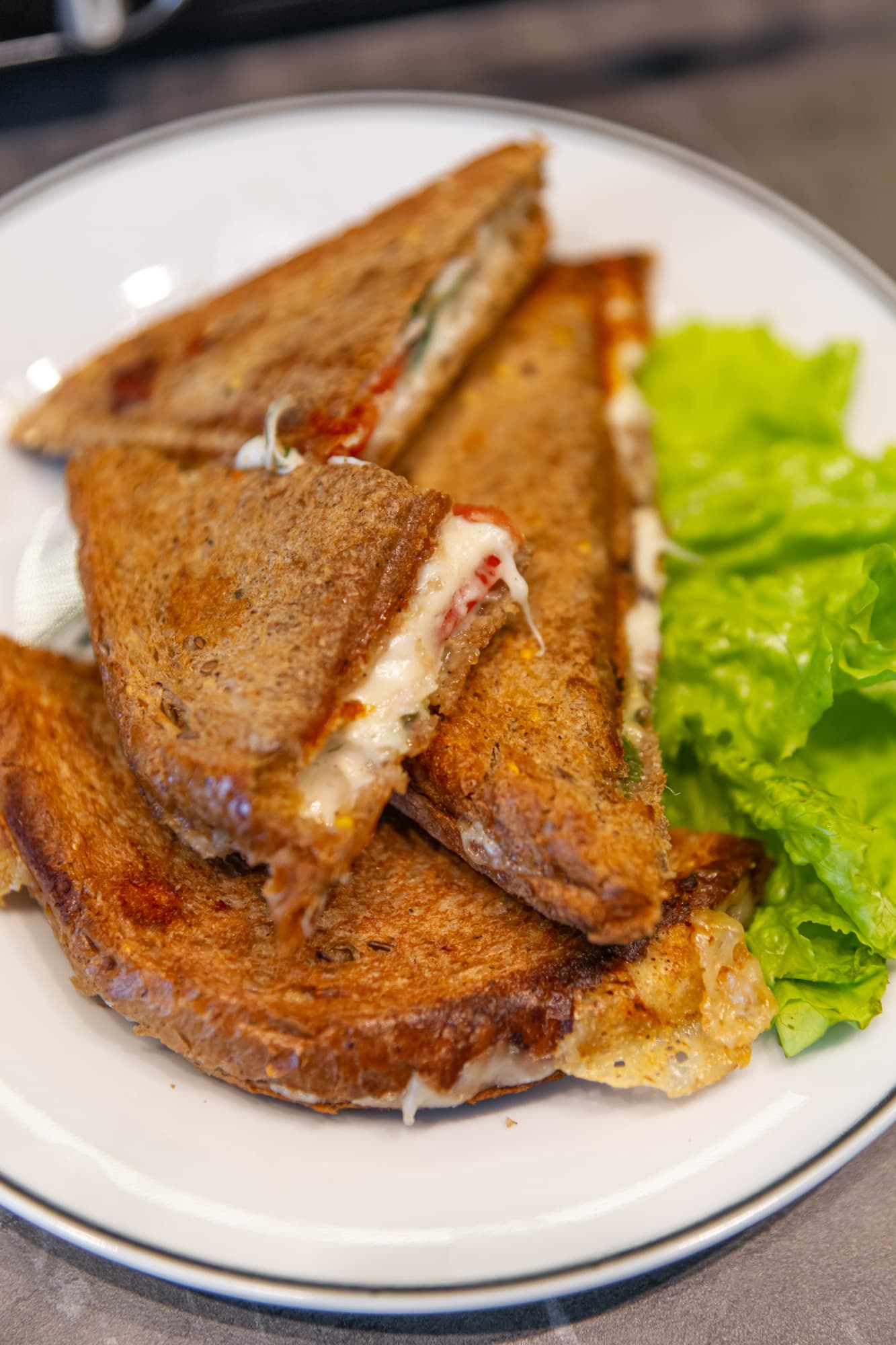 Накрыли еще одним куском хлеба и отправили в разогретый гриль.