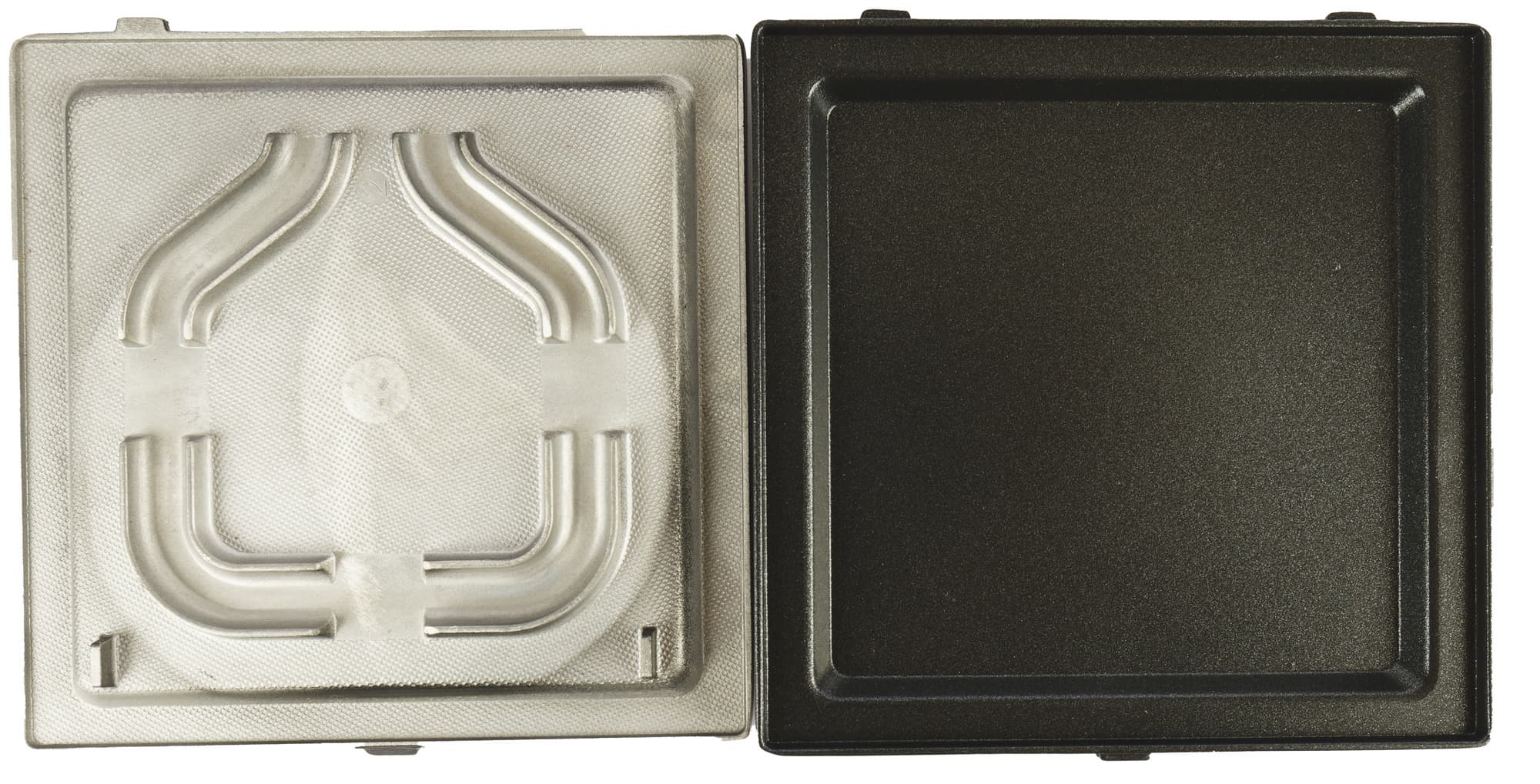Слева в основание встроен ребристый диск конфорки диаметром 13,5 см, справа — гриль, тоже встроенный, с тэнами в верхней и нижней панелях.