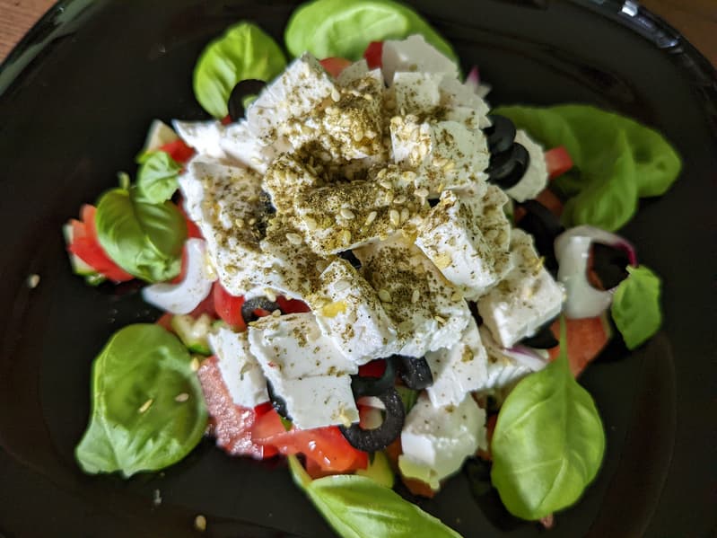 Если вы точно знаете, для чего делаете йогурт, можно перед выкладыванием на сито добавить в него пряности и соль. Или сахар. Но продукт безо всяких добавок у нас тоже пошел на ура. В частности, мы сделали из него салат вроде греческого: нарезали овощи, оливки и зелень, смешали с кубиками йогурта и подали с оливковым маслом и пряностями. Вот для такого блюда исходный продукт можно и посолить.