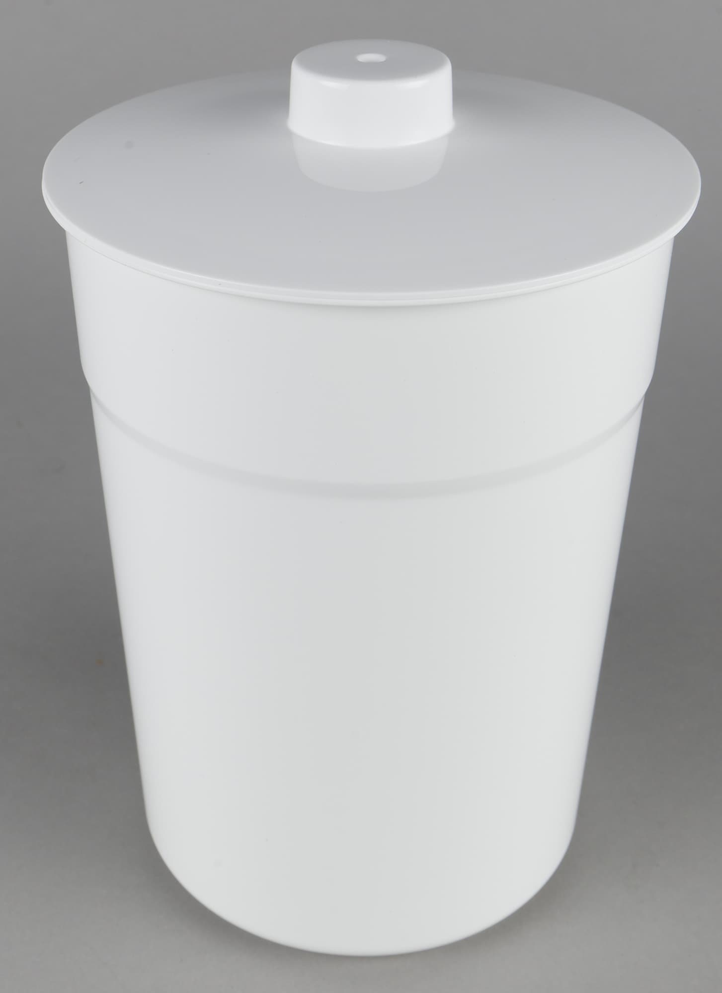 Обе емкости предполагается закрывать попеременно одной пластиковой белой крышкой с круглым выступом посередине.