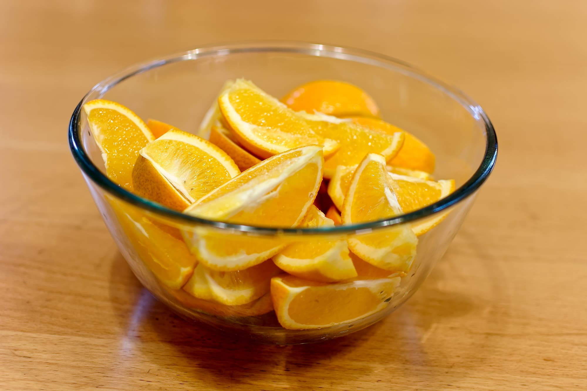 Для измельчения апельсина пришлось предварительно постараться и нарезать его на дольки подходящего размера.