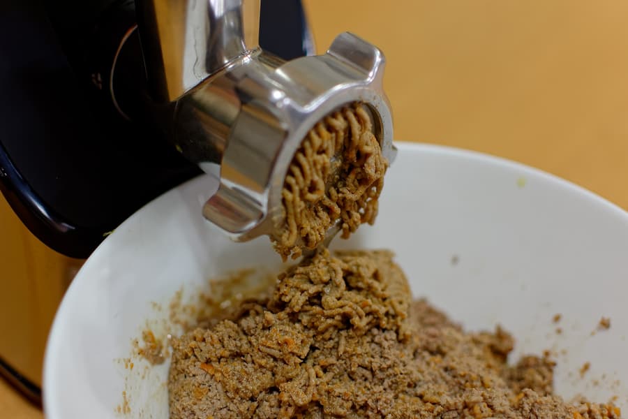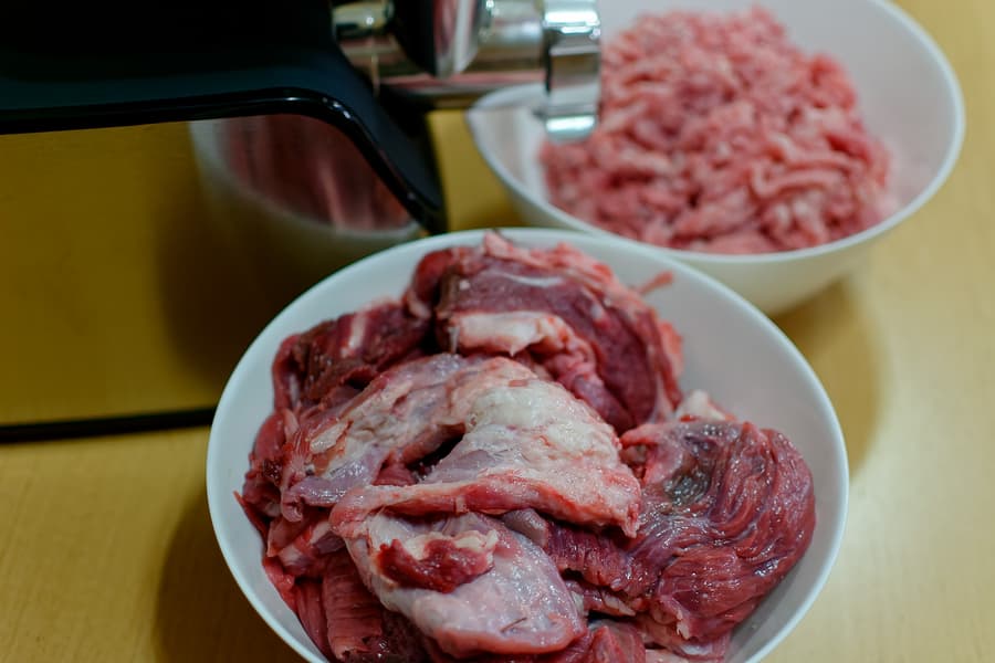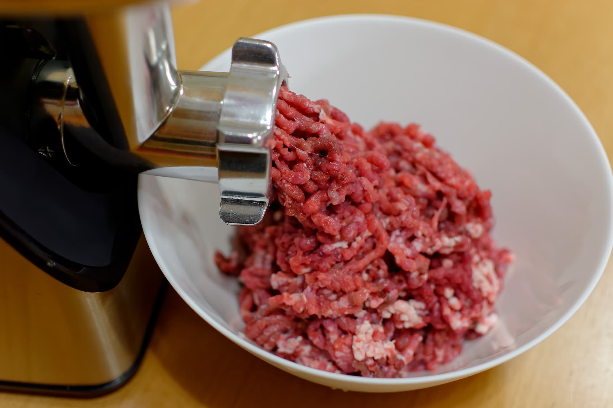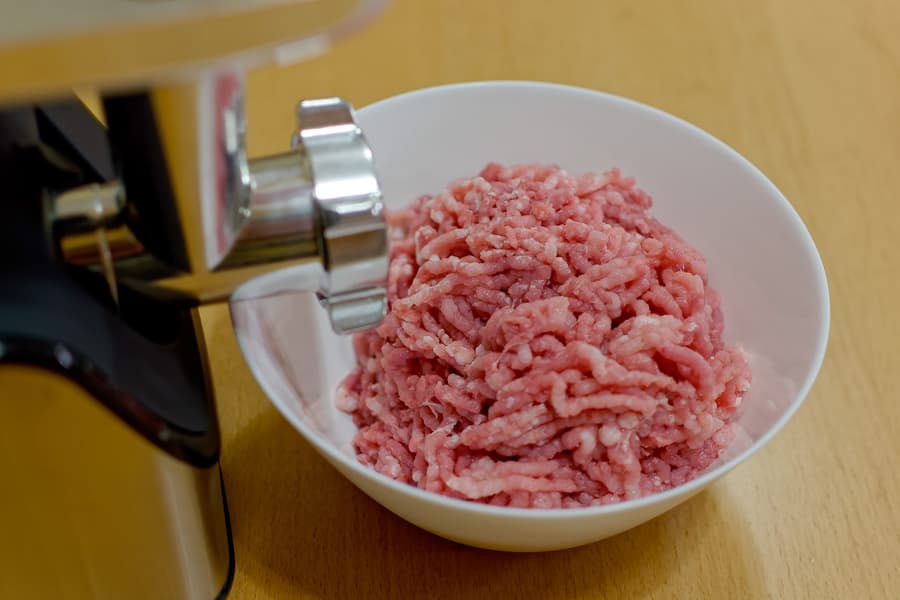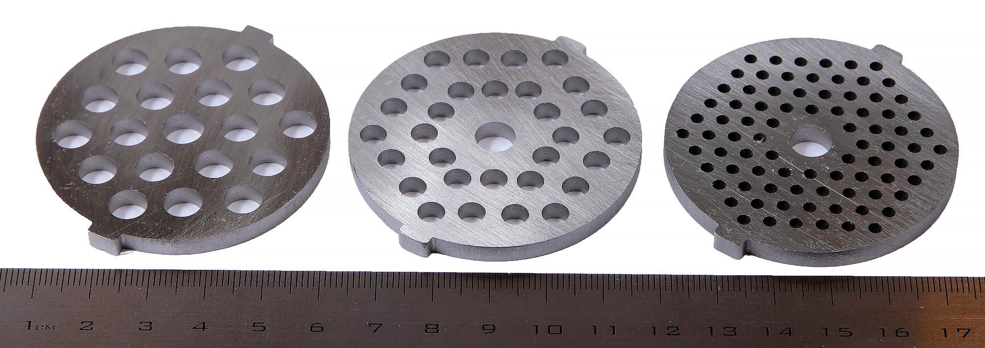 Для оценки производительности мы использовали охлажденную часть свиного окорока без костей, пленок и большого количества жира, прокрутив ее через решетку со средними отверстиями.