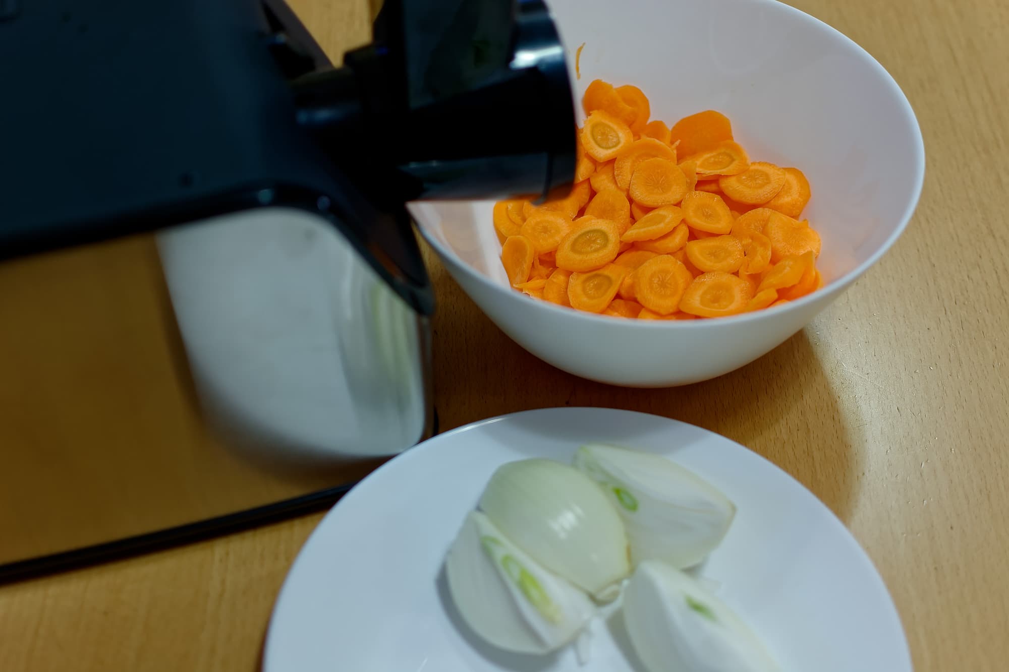 Овощи выбрали самые простые — те, которые на любой кухне неизбежно придется измельчать чаще всего: морковку и лук.