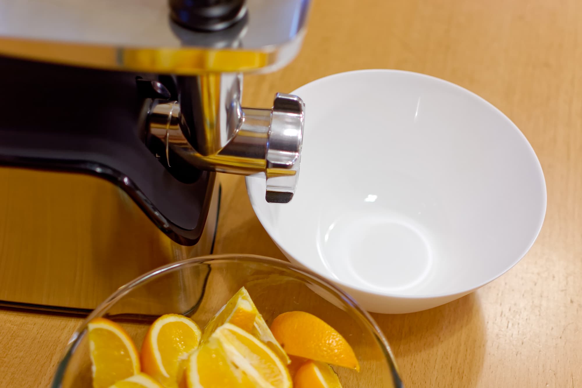 Этот легкий тест мы проделываем на тот случай, если попадется совсем уж слабая и немощная мясорубка. За все время тестирований с ним не справилось всего лишь два прибора. Здесь явно все будет в порядке — но методика есть методика, поэтому мы занялись апельсинами.
