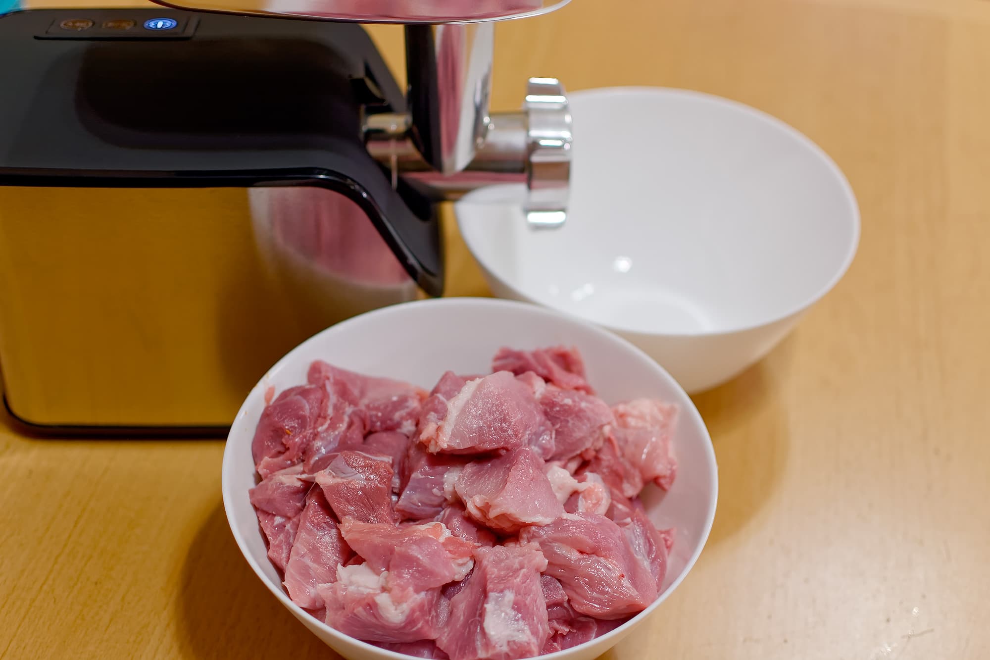 Поскольку производитель заявляет, что прибор способен переработать 2,3 килограмма сырья в минуту, мы запасли именно такой объем мяса.