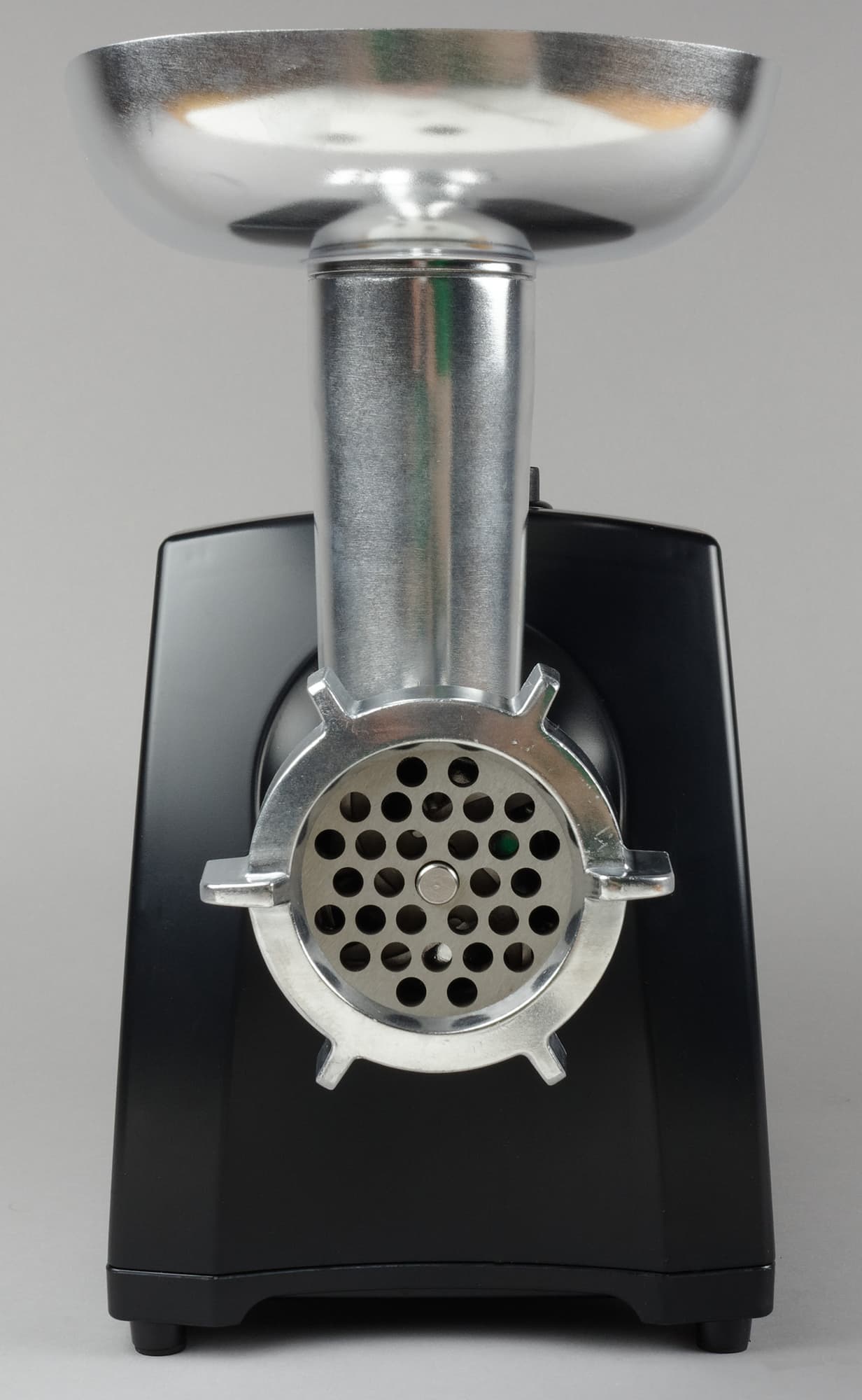 Производительность — это вес мяса, который мясорубка перемалывает за одну минуту. Для данного теста был использован свиной окорок, не подвергавшийся заморозке, очищенный от пленок и жира. Мясо было нарезано на длинные куски шириной, достаточной для прохождения горловины мясорубки. Для данного теста мы использовали решетку со средним диаметром отверстий.