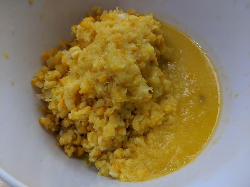 Крупные апельсины были нарезаны на четвертинки вместе с кожурой и косточками и перемолоты в мясорубке на той же средней решетке.