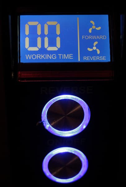 На дисплее при работе отображается время работы в секундах и значки с названиями режимов. При обычной работе на экране крутится значок над надписью Forward, при запуске реверса — над надписью Reverse.