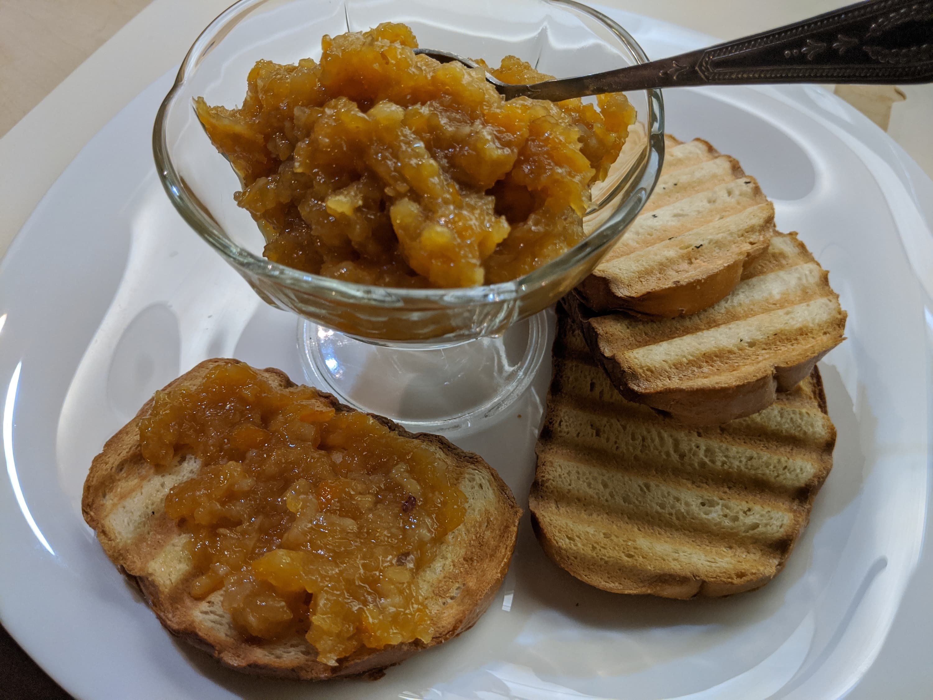 Из полученной массы мы сделали джем: добавили примерно 600 граммов тростникового сахара, выжали сок двух лаймов и натерли немного имбиря. Смесь грели на 95 °C до выпаривания жидкости — на это ушло около 40 минут.