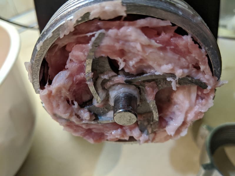 Кроме того, при набивке мы ощутили потребность замедлить подачу фарша — единственная скорость мясорубки слишком высока для формирования колбасок, и в одиночку работать в этом режиме затруднительно, требуется помощь ассистента.