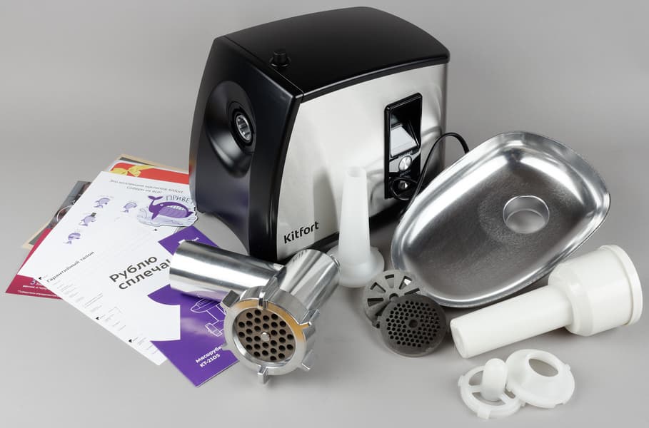 На сей раз мы испытываем мясорубку Kitfort KT-2105. Из дополнительных опций у нее есть только насадки для колбасок и кеббе, решеток традиционно три, зато сам прибор оборудован дисплеем. В ходе тестирования мы выясним, справится ли она с нашими стандартными и нестандартными тестами и что у нее внутри.