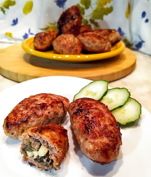 Мы смешали оба полученных фарша, часть заморозили, а из оставшегося решили сделать зразы с грибами с помощью насадки для кеббе. В оригинальном рецепте этого ближневосточного блюда в фарш добавляется булгур, но мы решили рискнуть и добавили к мясу хлеб и лук, как для классических котлет. Это оказалось не лучшей идеей — при малейшем ускорении проталкивания такого нежного фарша в горловину наши заготовки для зраз рвались, так что несколько штук мы сделали с помощью насадки, а остальное лепили руками — именно поэтому не посвящаем данному тесту отдельный пункт.