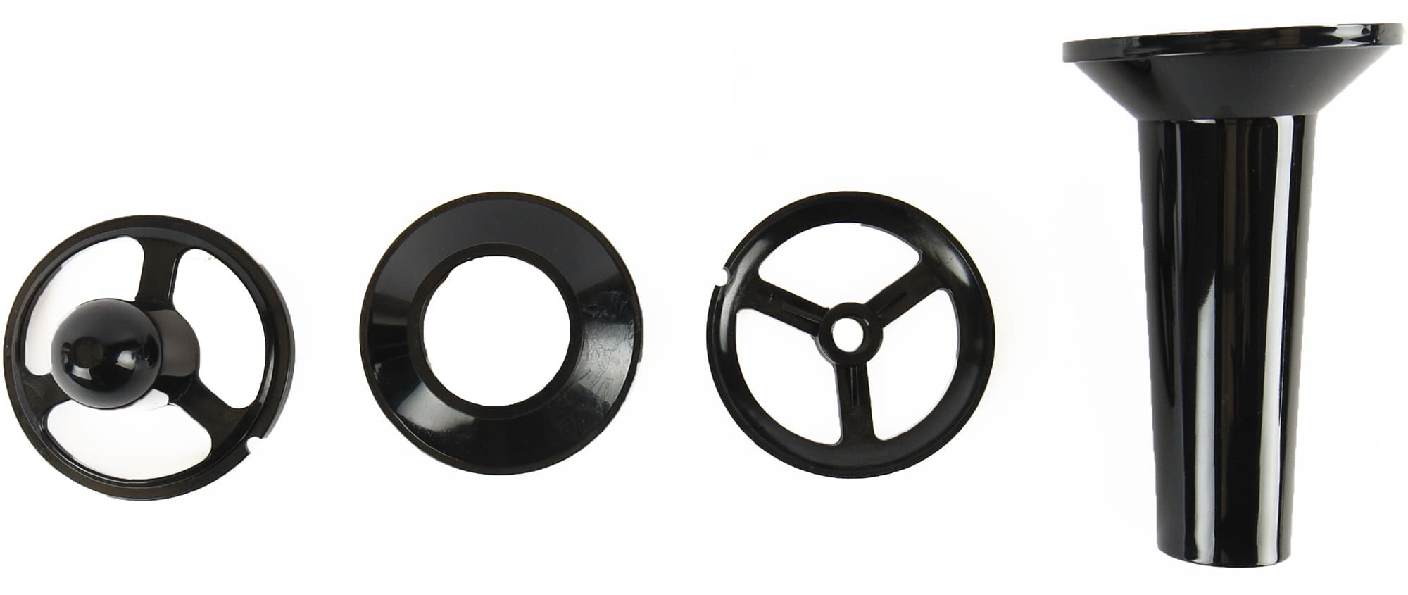 Горловина надежно закрепляется в предназначенном для нее отверстии с помощью фиксатора, расположенного сбоку. По часовой стрелке — закрутить, против — раскрутить.