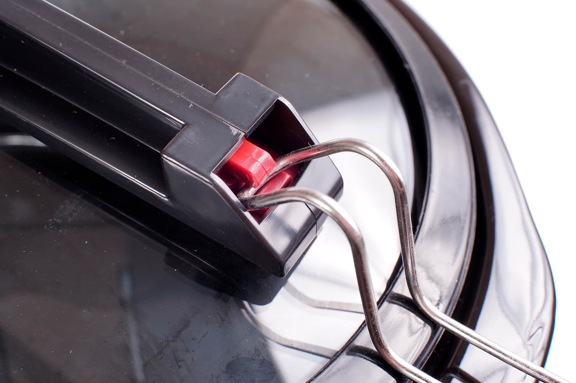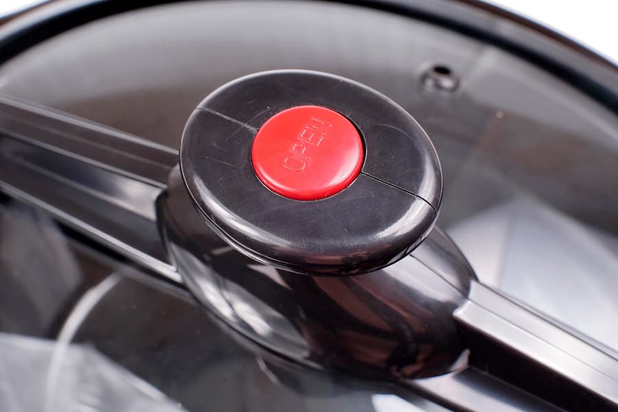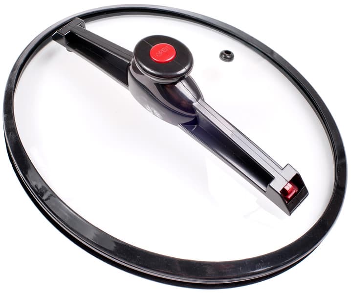 Несмотря на практически герметичную конструкцию, на самой крышке имеется отверстие для выхода излишков пара. Вероятно, герметичность здесь нужна, чтобы этот процесс был полностью контролируемым. Нажатие на красную кнопку на ручке освобождает захваты.