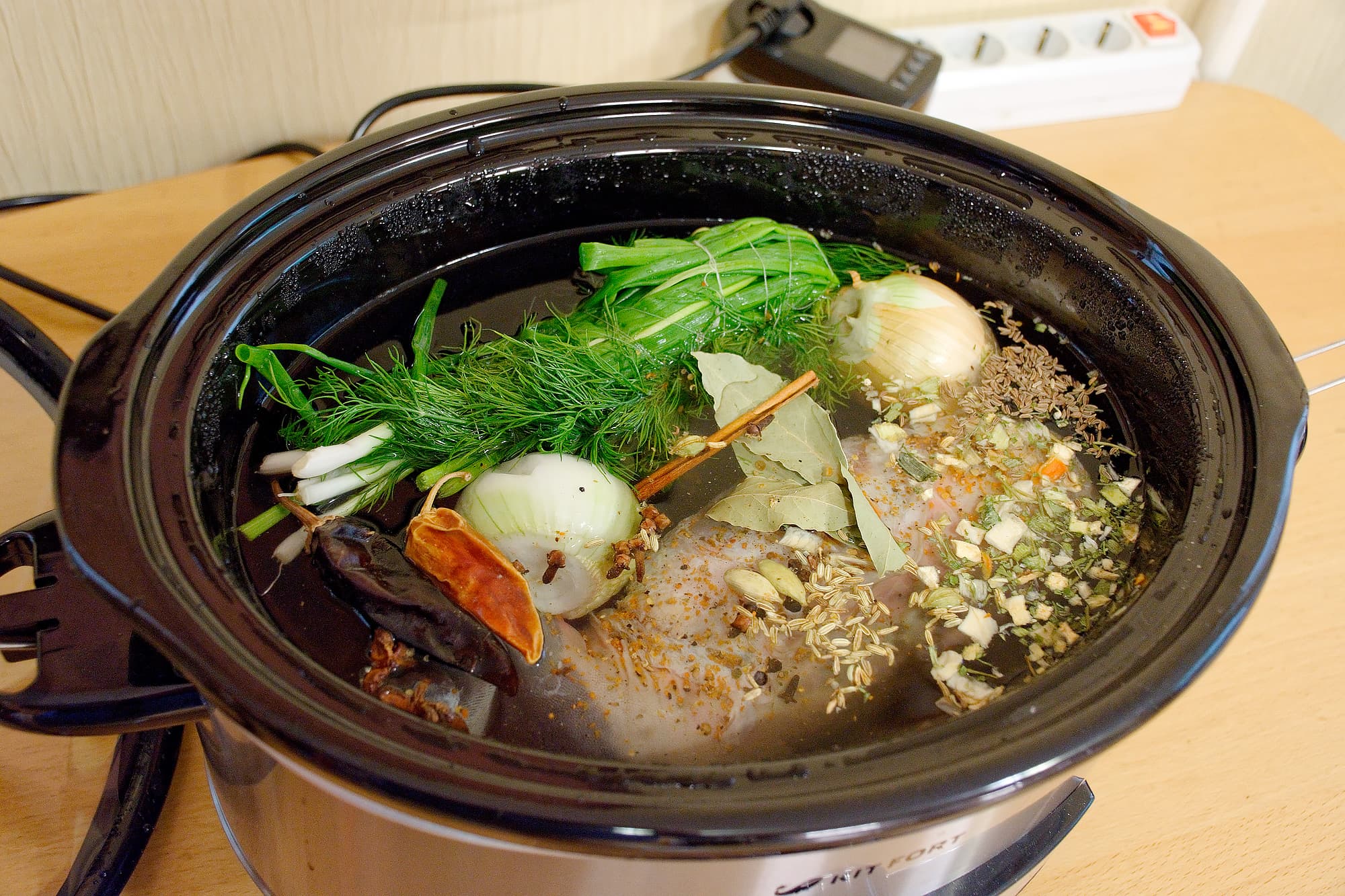 Затем мы поставили наше блюдо на 8 часов в режим «High» — гулять так гулять.