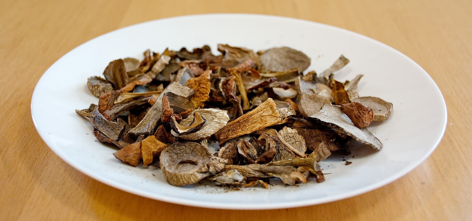 Сушеные подосиновики наломали на небольшие кусочки.