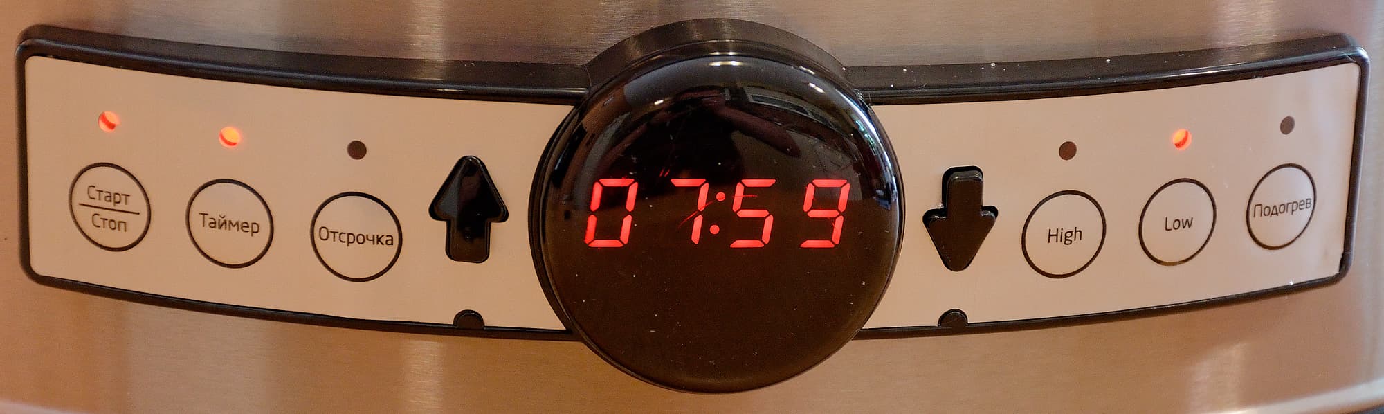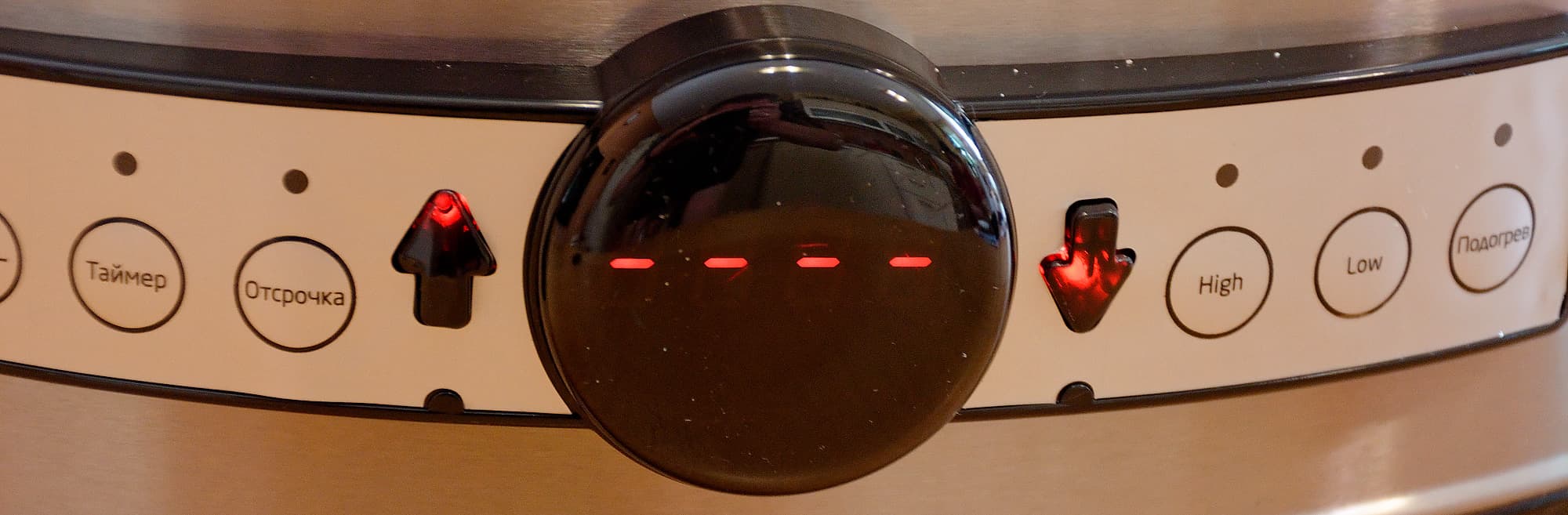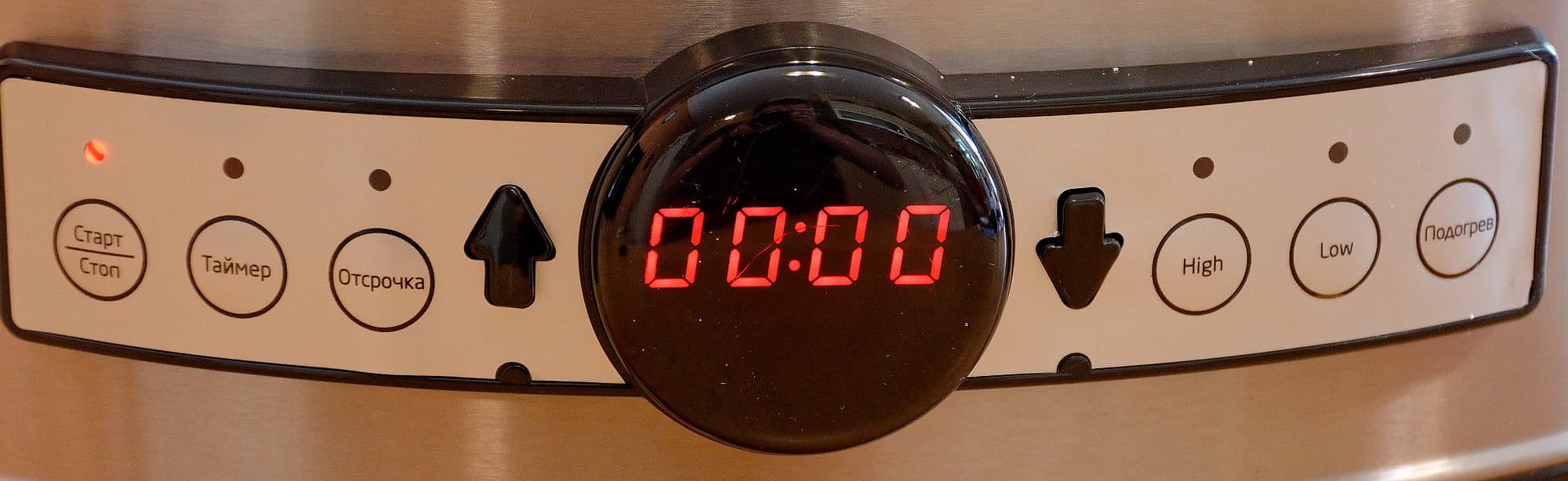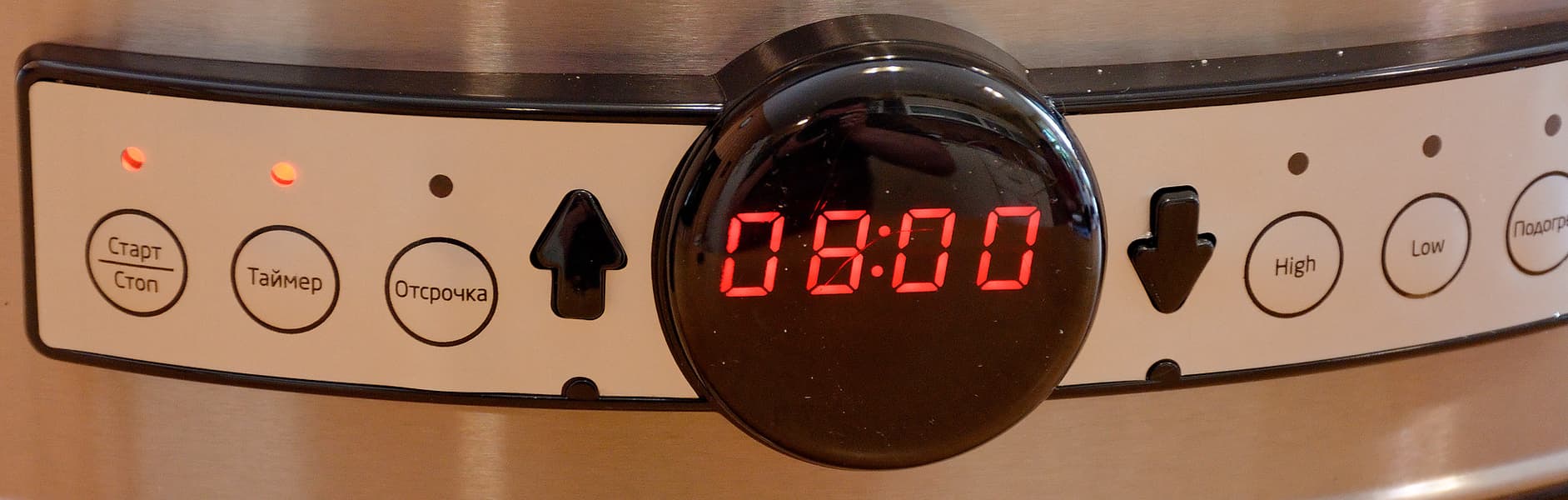 Панель управления медленноваркой, включенной в сеть, выглядит следующим образом.