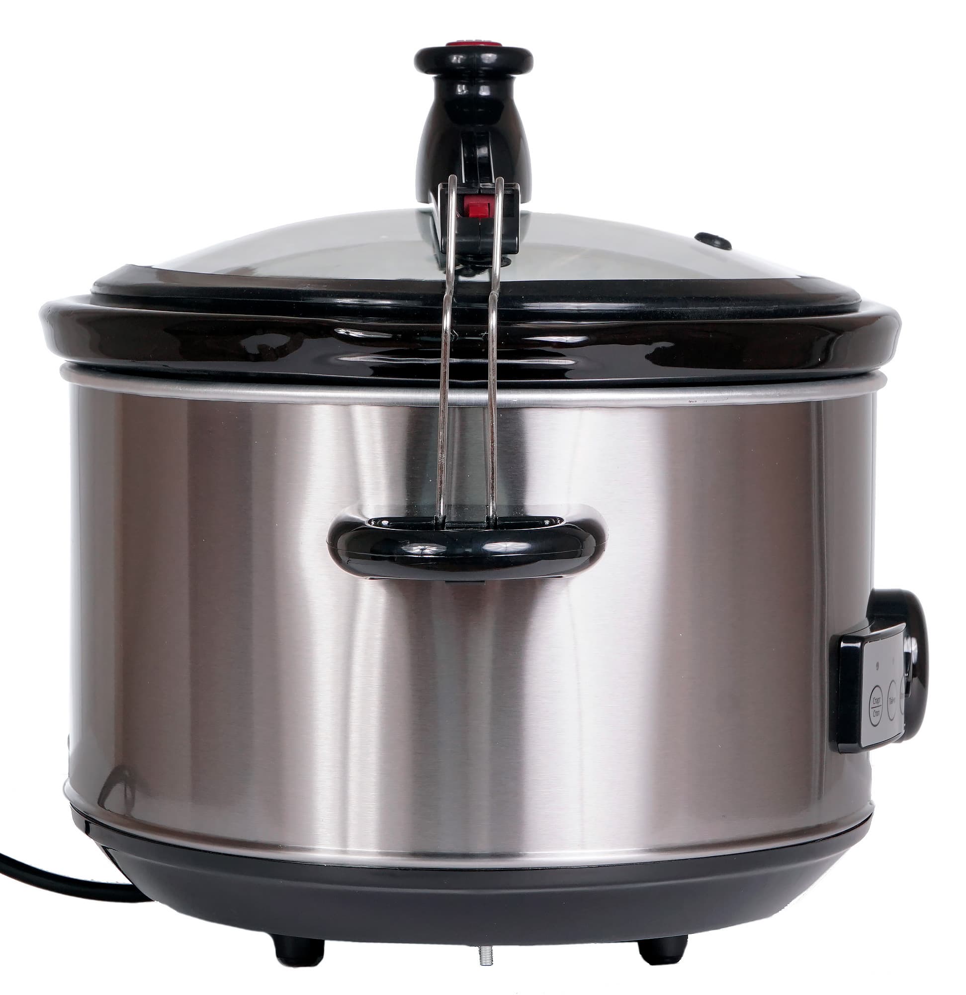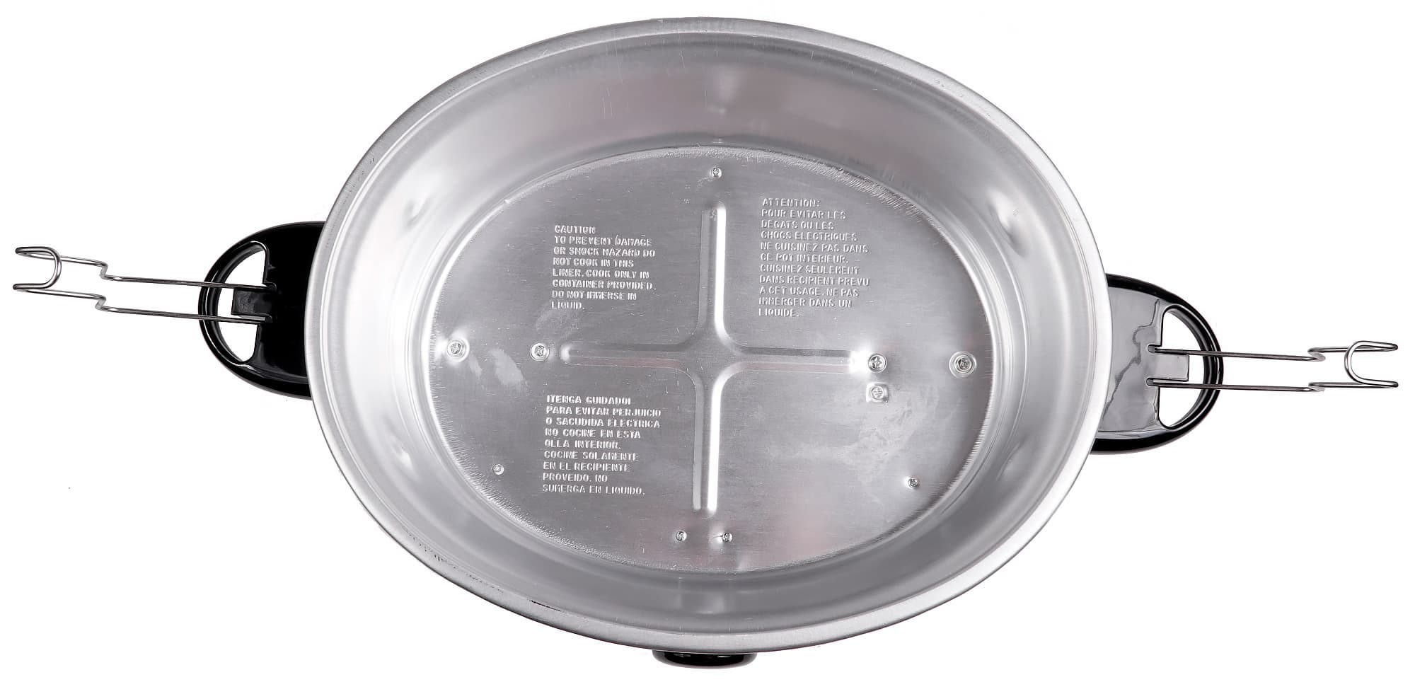 Боковые ручки предназначены для переноски всего устройства целиком, но в инструкции нас предупреждают, что ни в коем случае нельзя с их помощью переносить медленноварку с чашей, наполненной содержимым — на это ручки не рассчитаны и их прочности крепления к корпусу может не хватить.