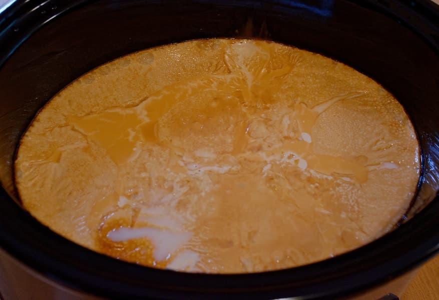 Медленный режим на 12 часов — и мы на месте. Пенки автор не утапливал, так как лег спать, а зря: запекшаяся сверху корочка оказалась великолепна.