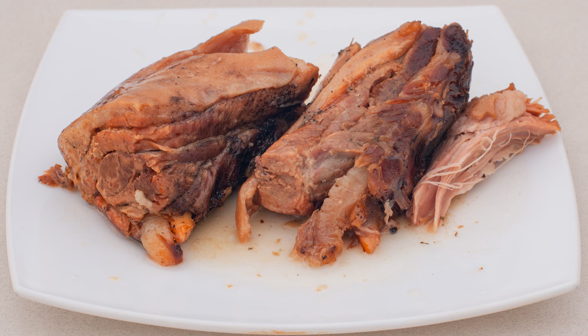 Еще через несколько часов аккуратно перевернули куски, вынули кости и часть выступающих хрящей. После окончания приготовления достали.