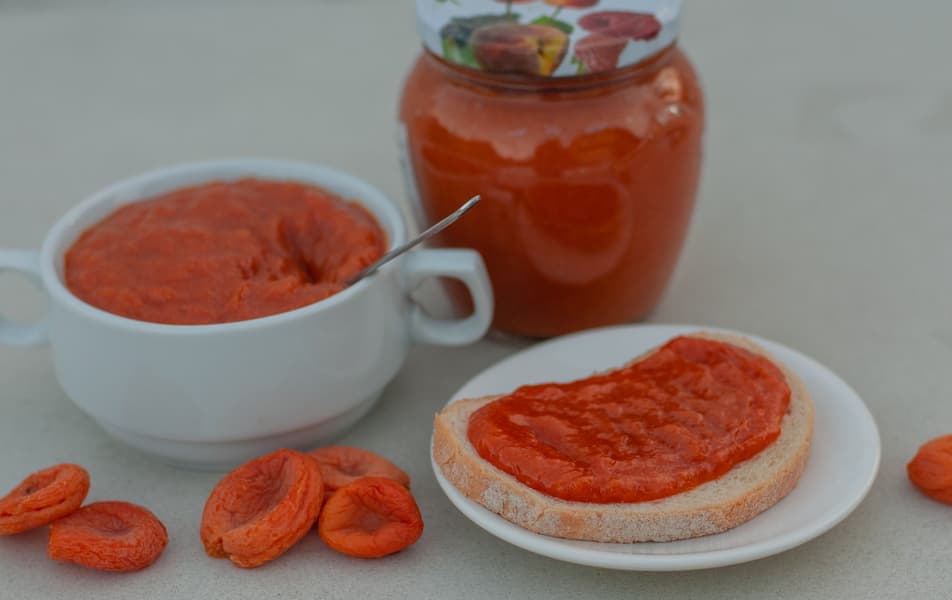 Тщательно промыли 1 кг кураги, замочили на ночь в холодной воде. Когда курага стала мягкой, измельчили ее в куттере с сахаром до пюреобразного состояния, добавили порошок корицы.