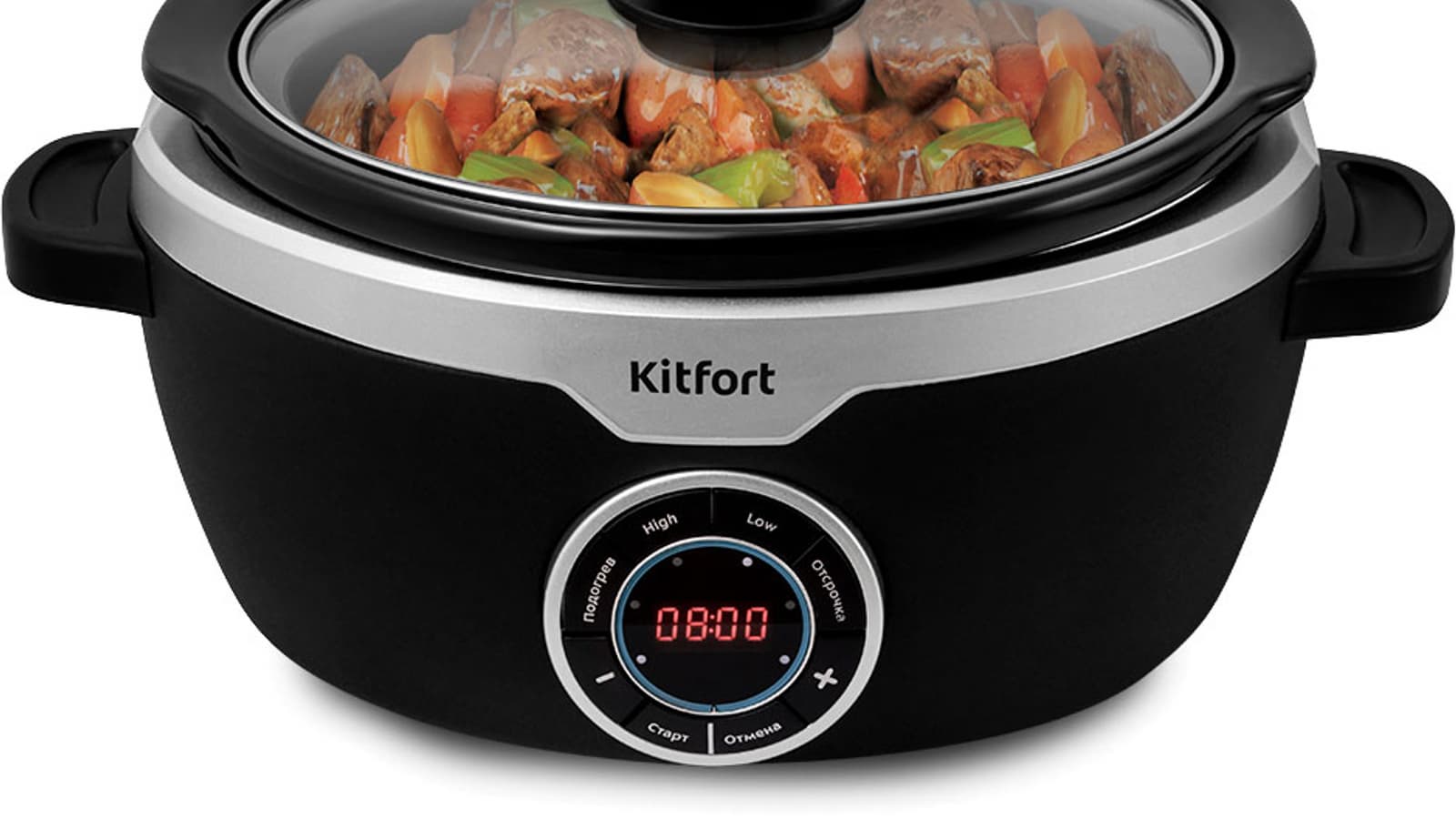 Kitfort KT-217, по нашему мнению — достойный, полезный и продуманный кухонный прибор. Готовить в нем удобно благодаря удачному объему кастрюли, ухватистым ручкам, почти не нагревающемуся корпусу и простому управлению. Толстостенная керамическая кастрюля равномерно распределяет тепло в процессе готовки и остается теплой очень долго после ее окончания.