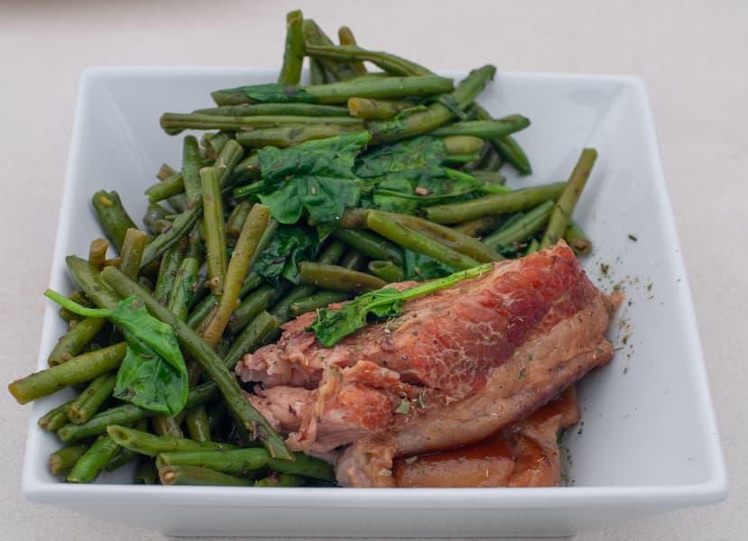 Подали с гарниром. Что сказать, великолепное, сочное, мягчайшее мясо!
