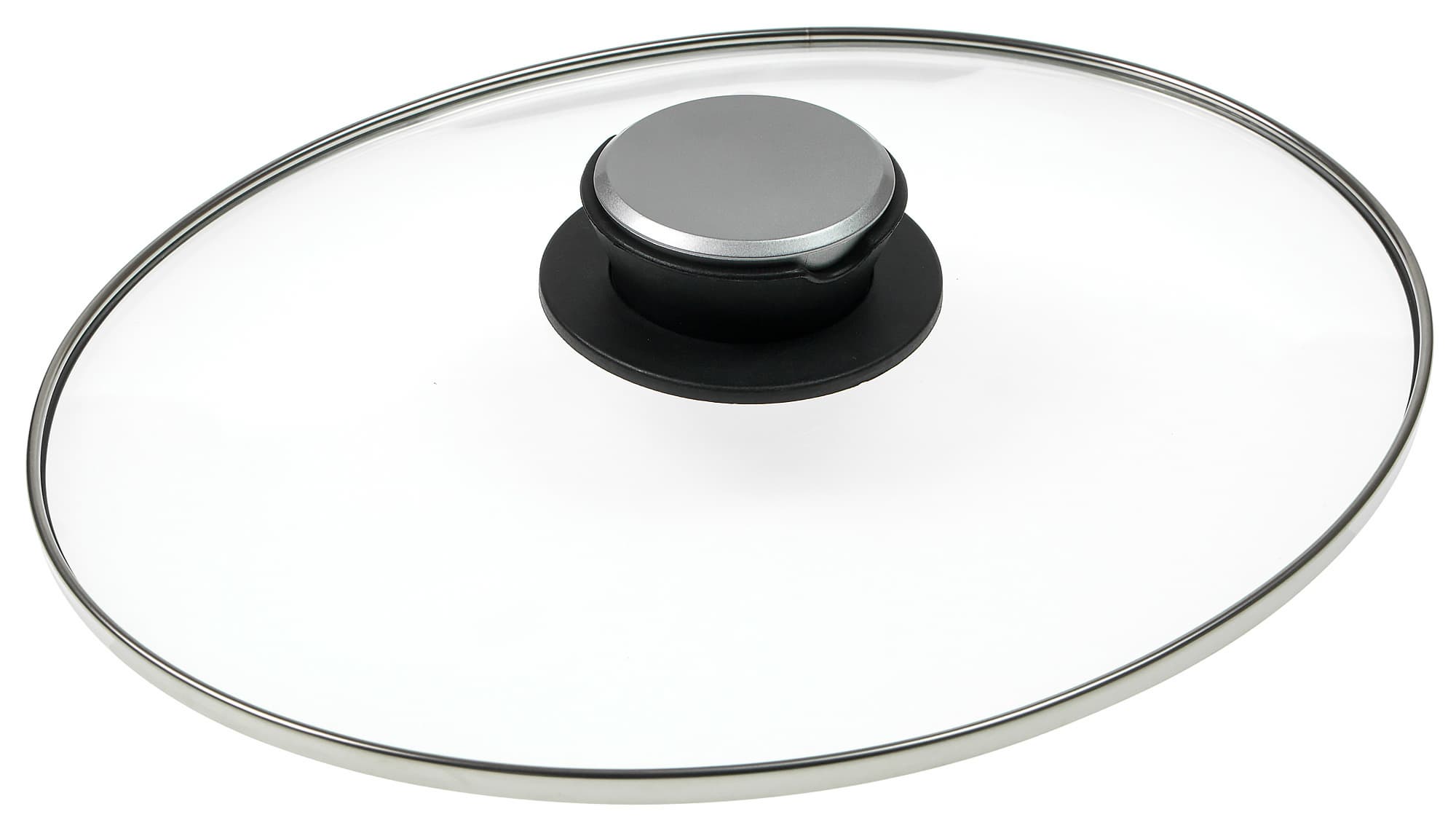 А вот крышка удивила отсутствием уплотнительной резинки. Крышка овальной формы из стекла с металлическим ободком и пластиковой ручкой.