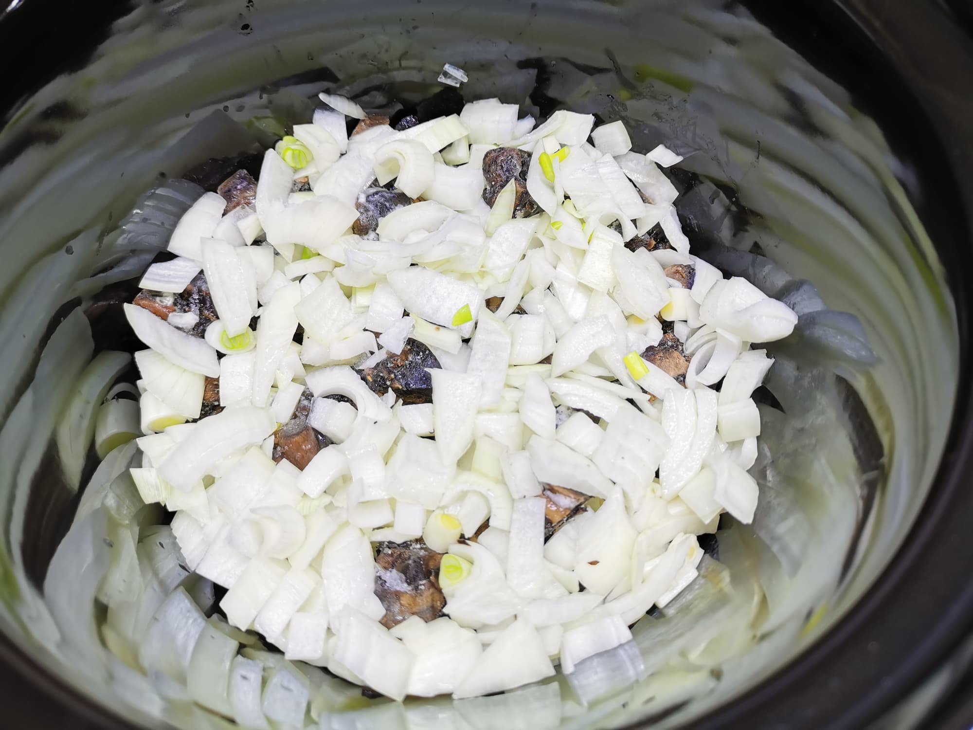 Далее мы тщательно перемешали содержимое кастрюли, накрыли ее крышкой и готовили в режиме «High» 3 часа.